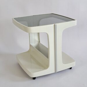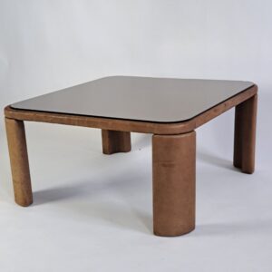 Coffeetable with faux leather covered frame and mirrorglass top 1970s