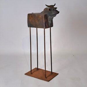 Sculpture by Dutch artist Carla Schagen raku and steel 1990s