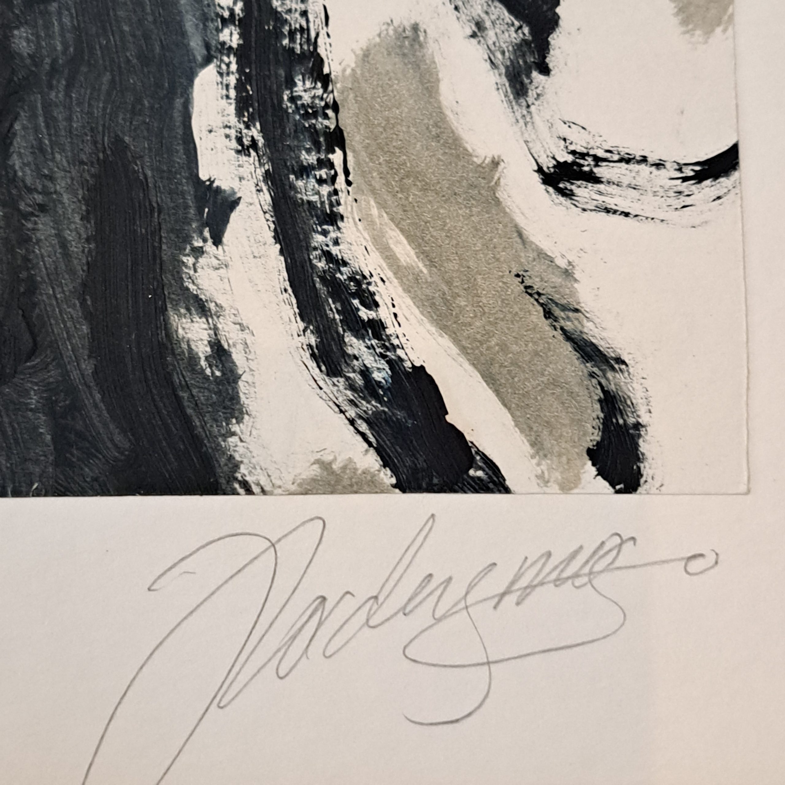 Small oilpainting by the Dutch artist Jan Radersma (Jakarta 1948), well-known for his poetic abstract landscapes, in very good condition, oil on paper, signed J. Radersma, c. 2000, frame with light scratches, 43×43/19×18.