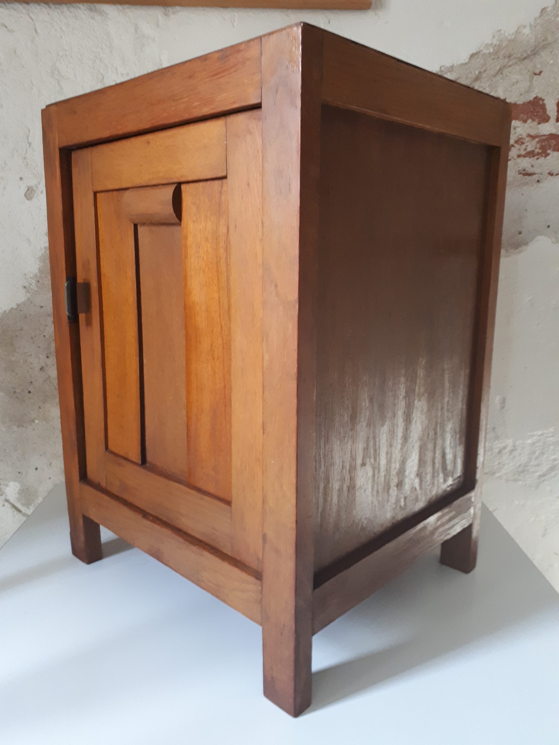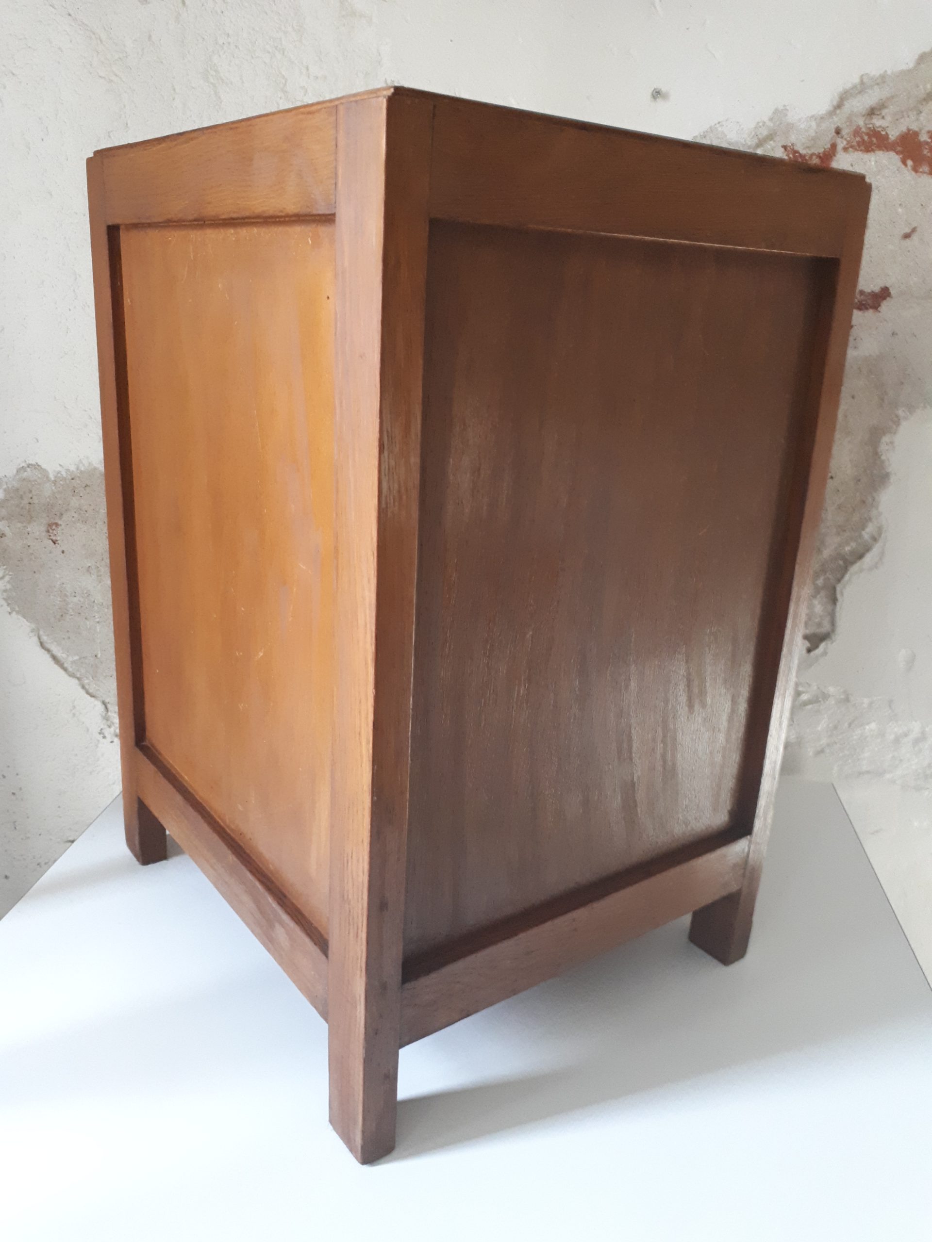 Elegant nightstand from the art deco period, 1920’s, wood with a glass top and nice details, in good condition, h. 56, w. 40, d. 35