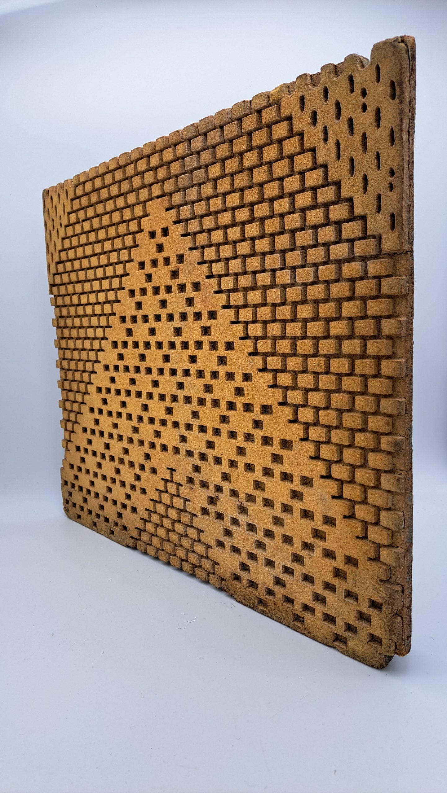 SOLDThe Vlisco factory in The Netherlands is famous for its colourful fabrics that are very popular in West-Africa. The fabrics were handprinted with so-called batikstamps. Now these stamps are very decorative, almost Zero art, in good condition, wood and (kind of) rubber, 46x38x5