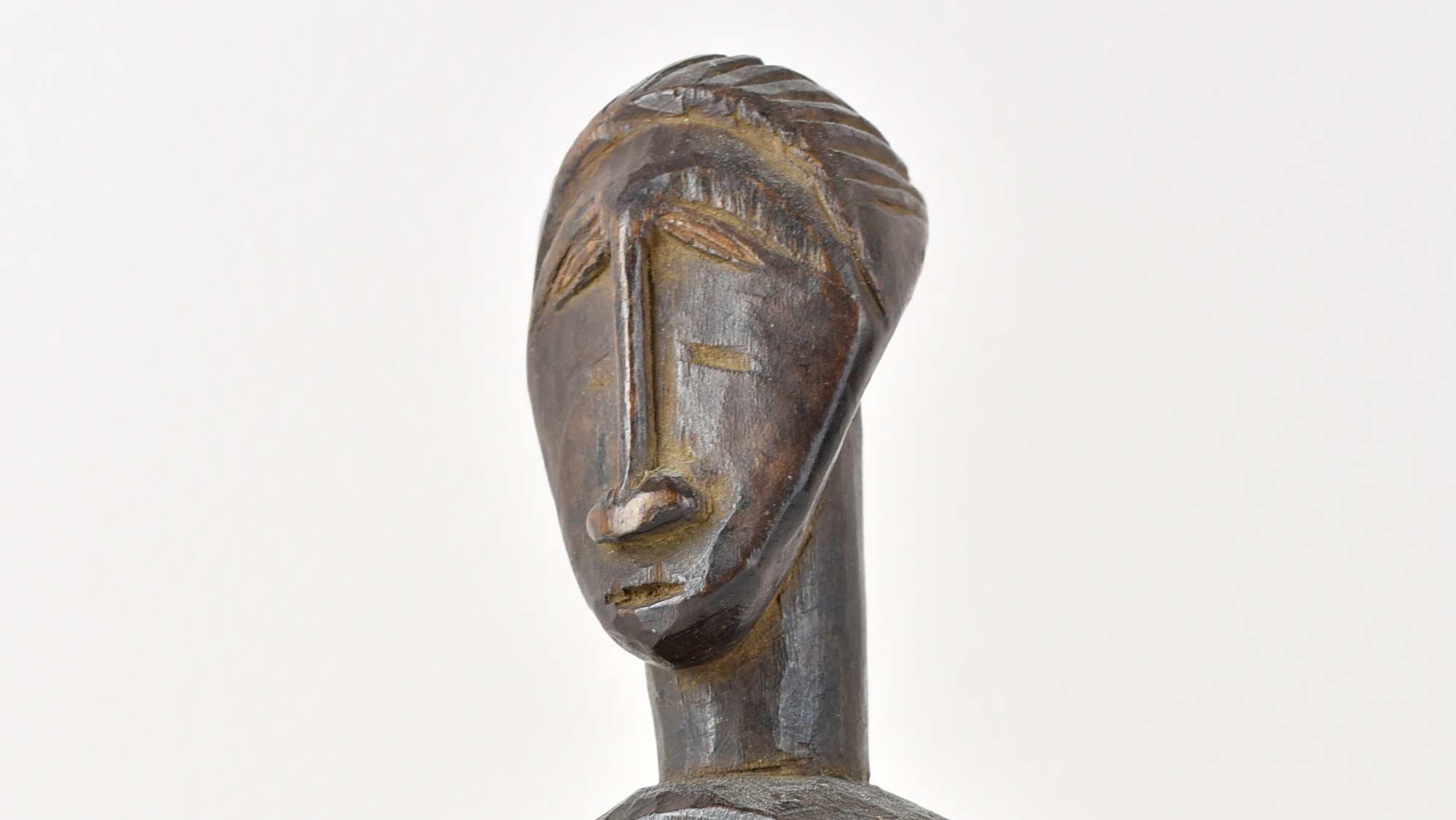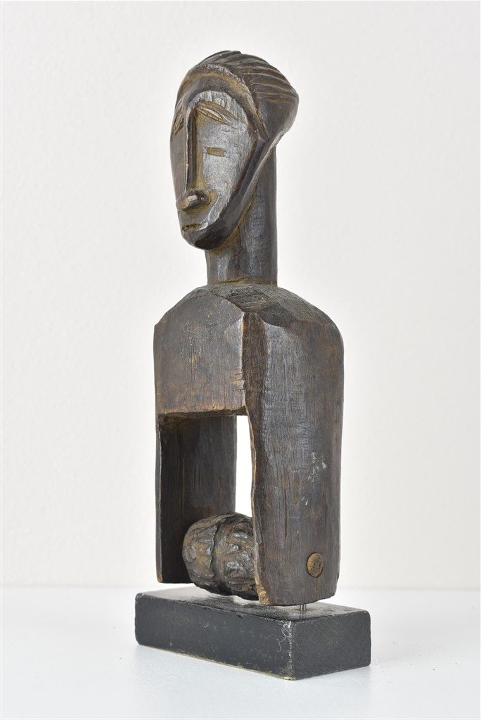 Het beeldje is een katroltop van een weefgetouw en bijzonder gaaf en karakteristiek voor de Baule-stam in Ivoorkust.