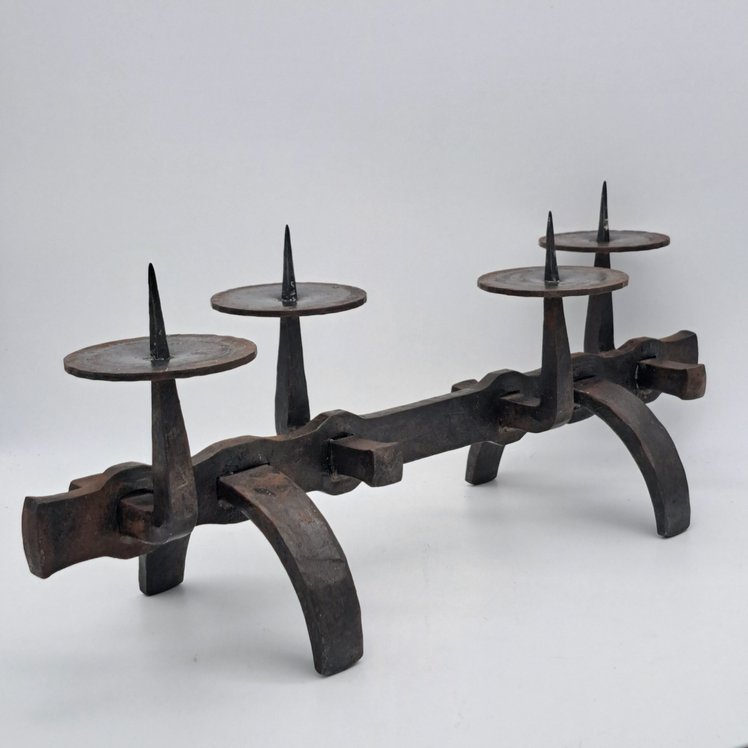 Brutalist candleholder in wrought iron 1970s, in very good condition, w. 46, d. 15, h.18