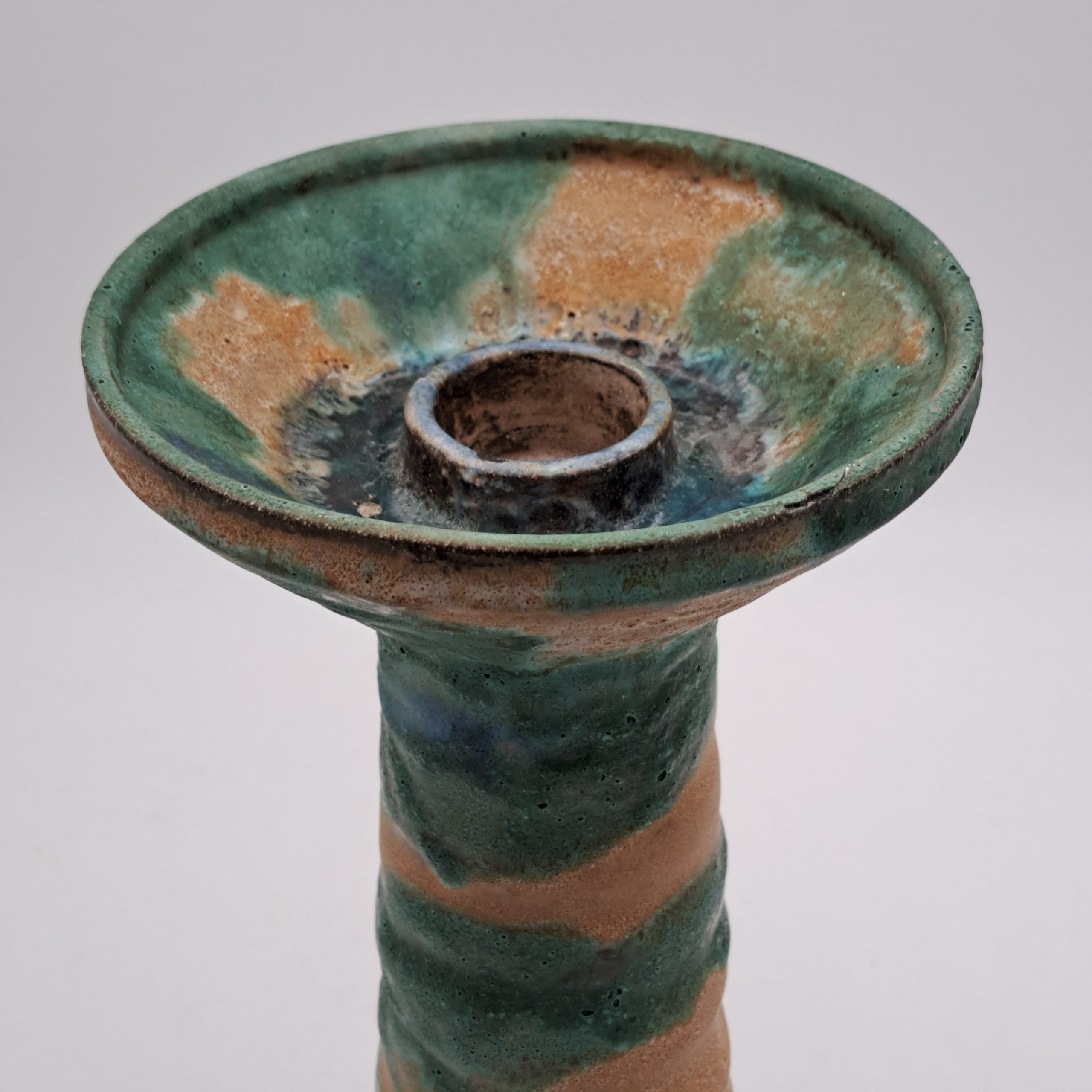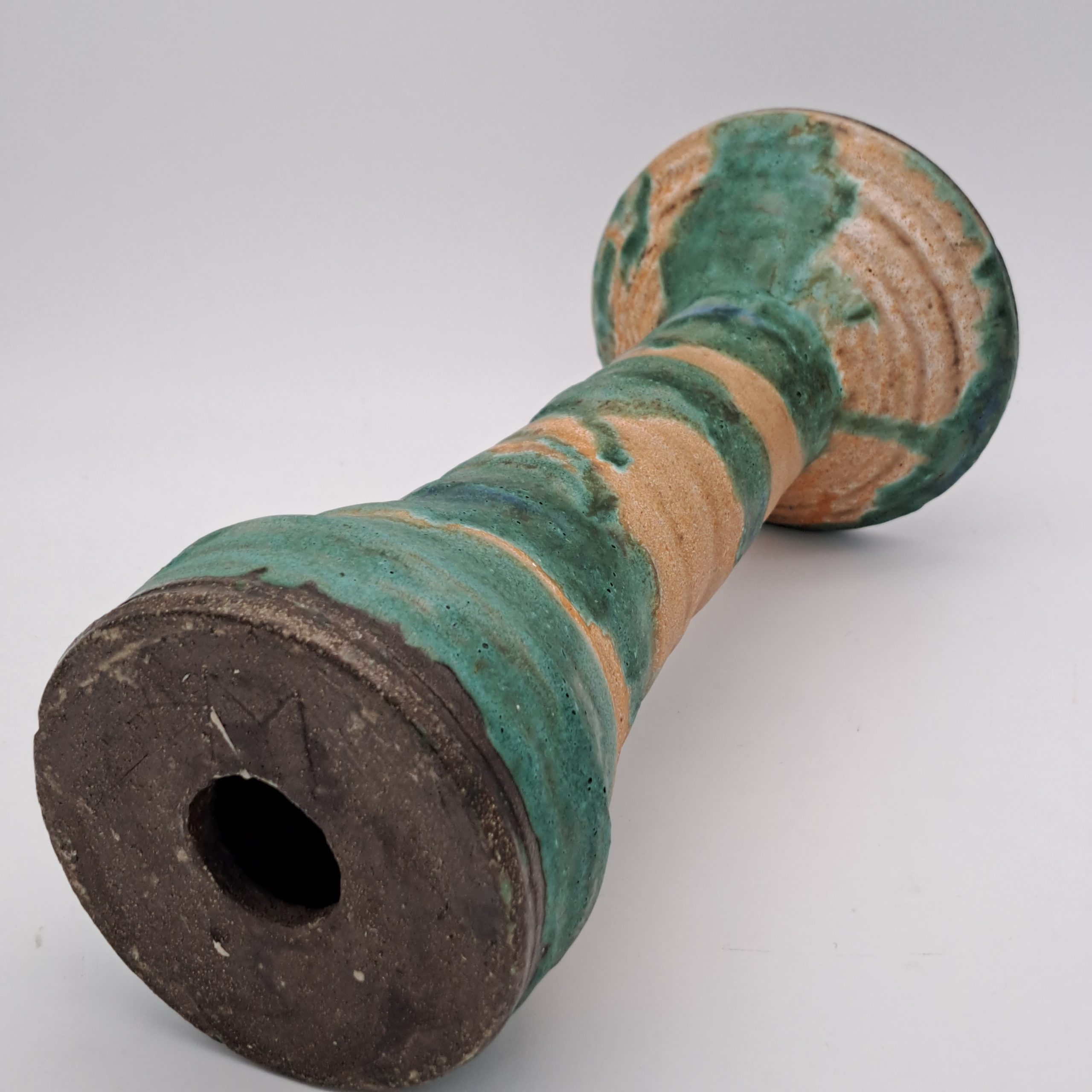 The Dutch ceramist Hannie Mein (1933-2003) becomes more popular nowadays because of her beautiful Scandinavian-inspired work. Especially the glazes are her signature in all ceramic products she made. This candle holder is somehow different and more rare because of the use of the green colour. In very good condition, h. 31, diameter 12