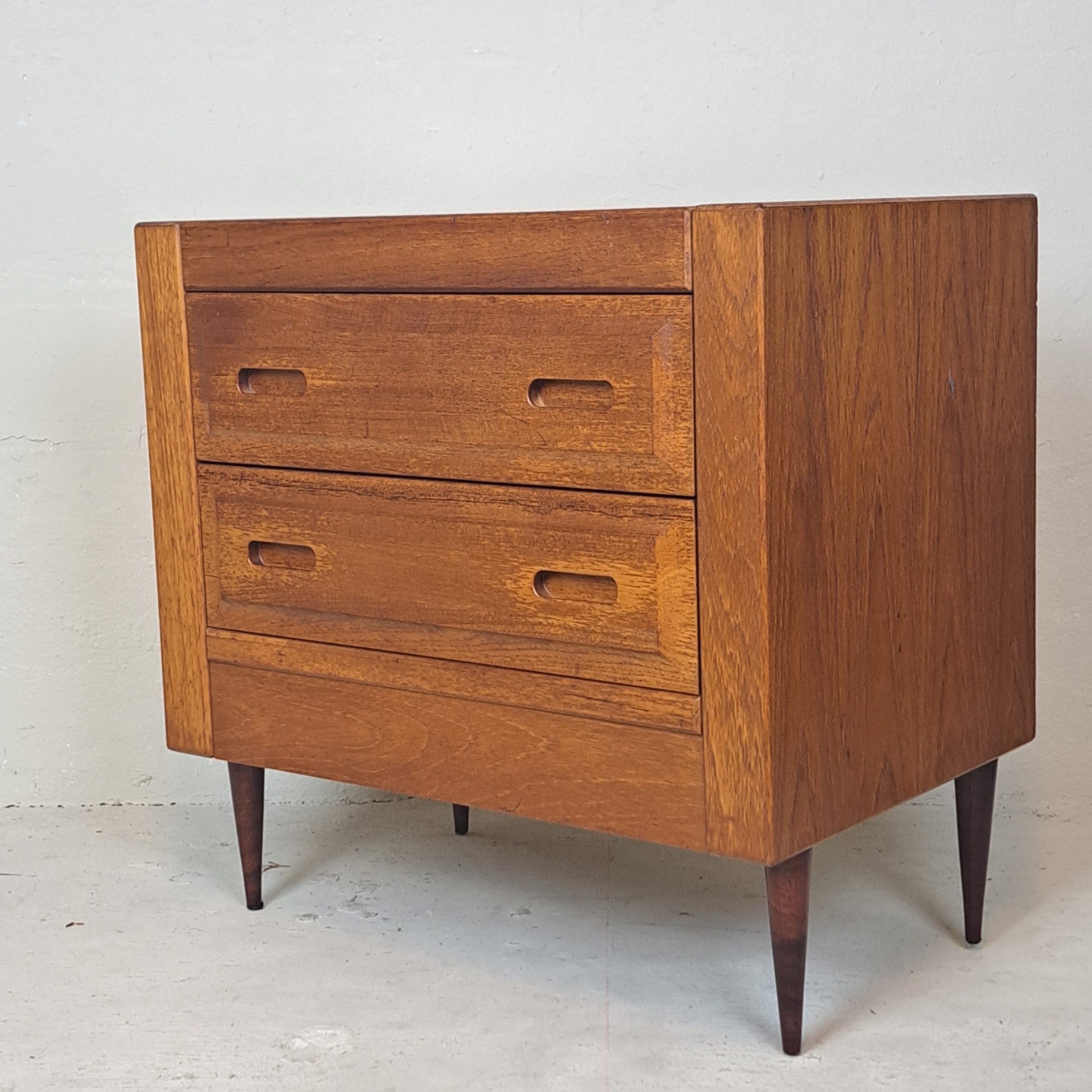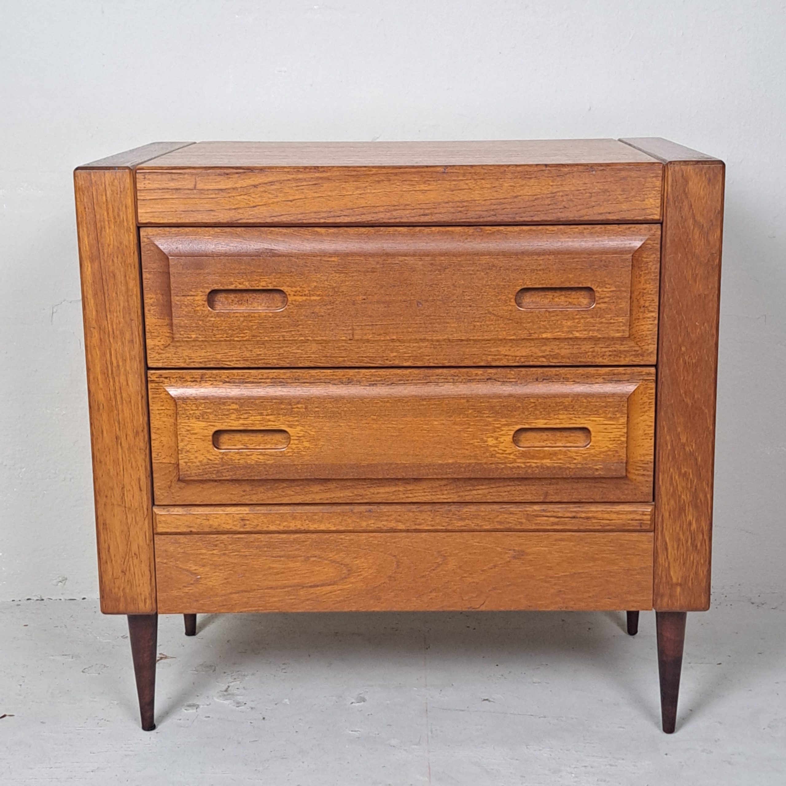 Chest of drawers with two drawers, wood and wood-veneer, Danish-style,  designer and producer unknown, very solid, in very good condition, h. 59, w. 60, d. 46