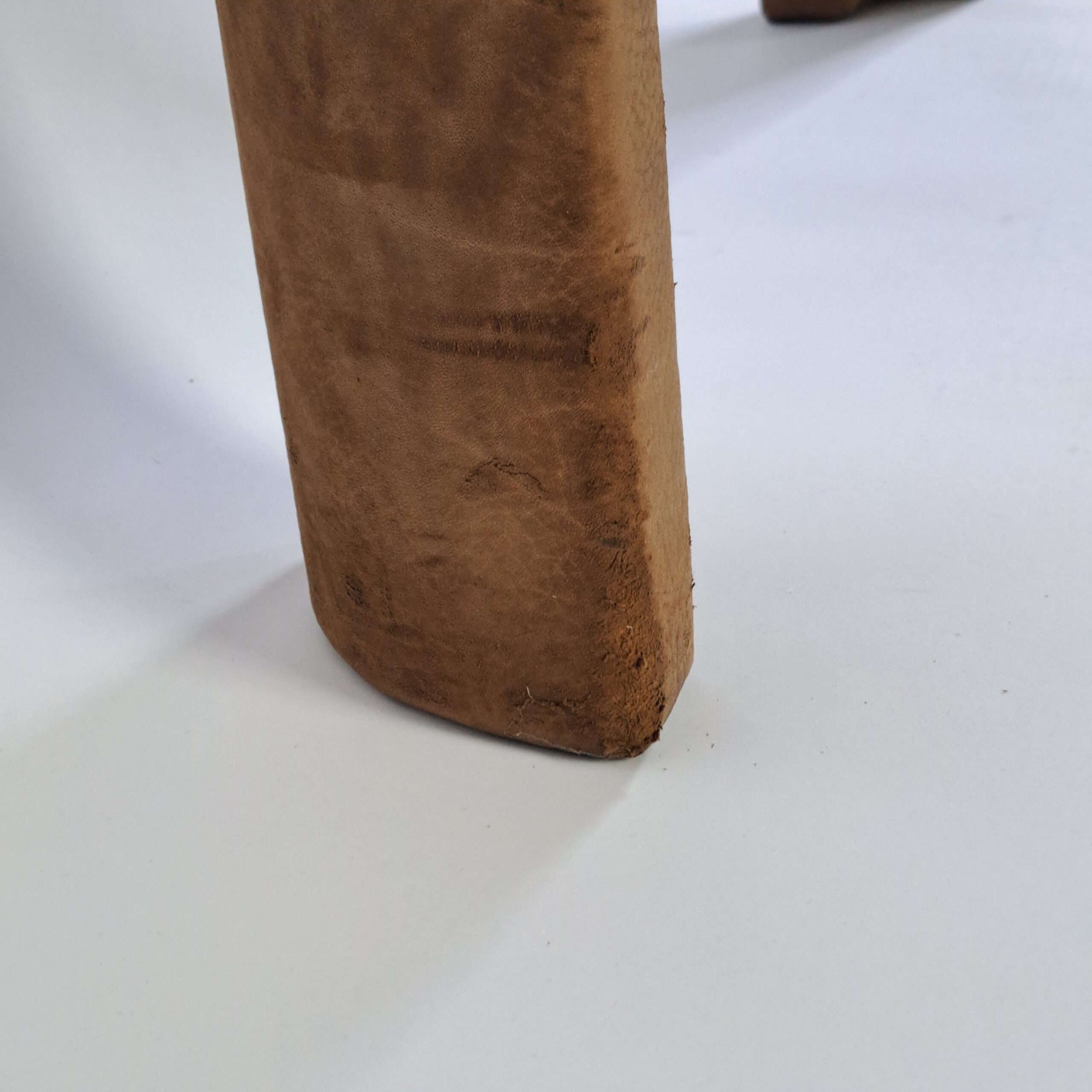 A very sophisticated, probably Italian, coffeetable with a metal and wooden frame, covered with faux leather and with a mirror glass top. In good condition, with some signs of use on the legs, 80x80x40