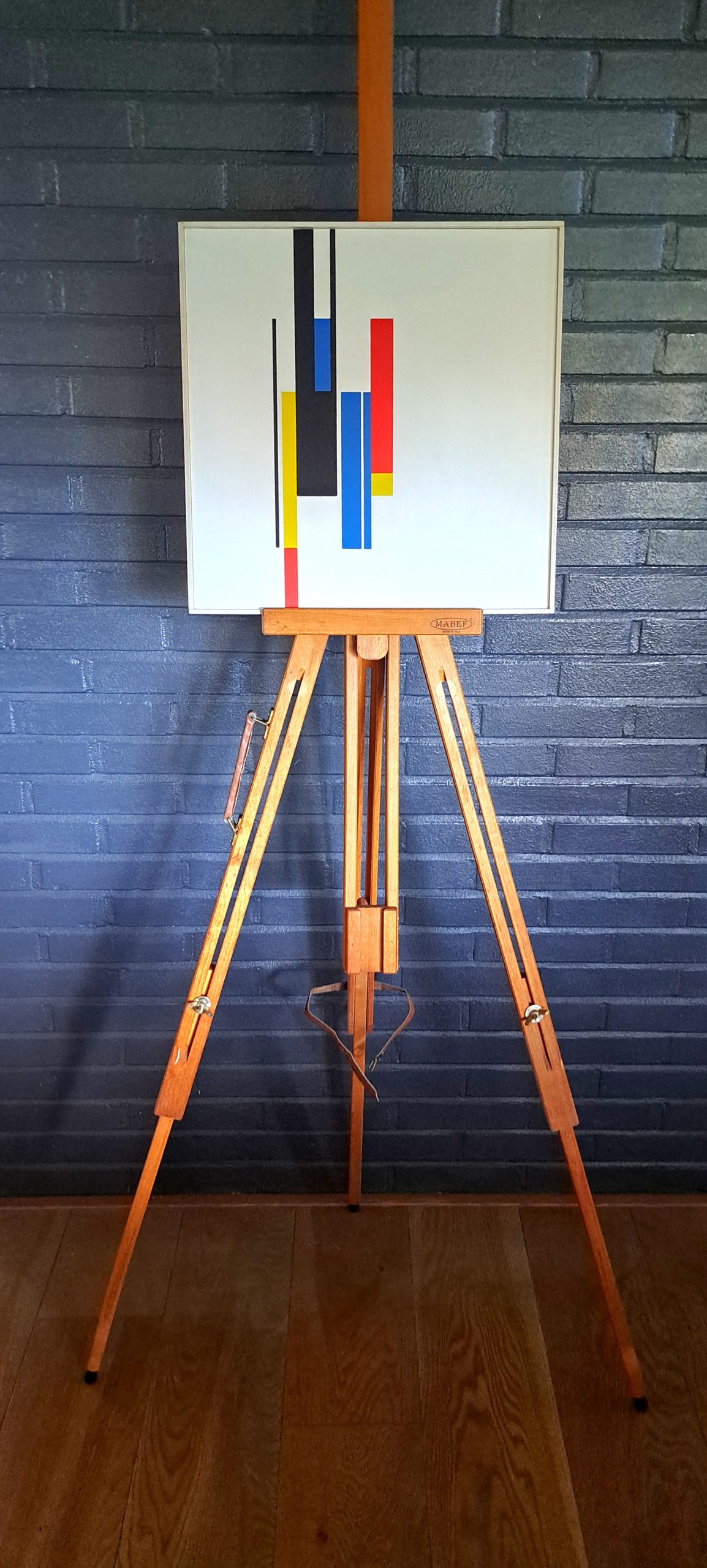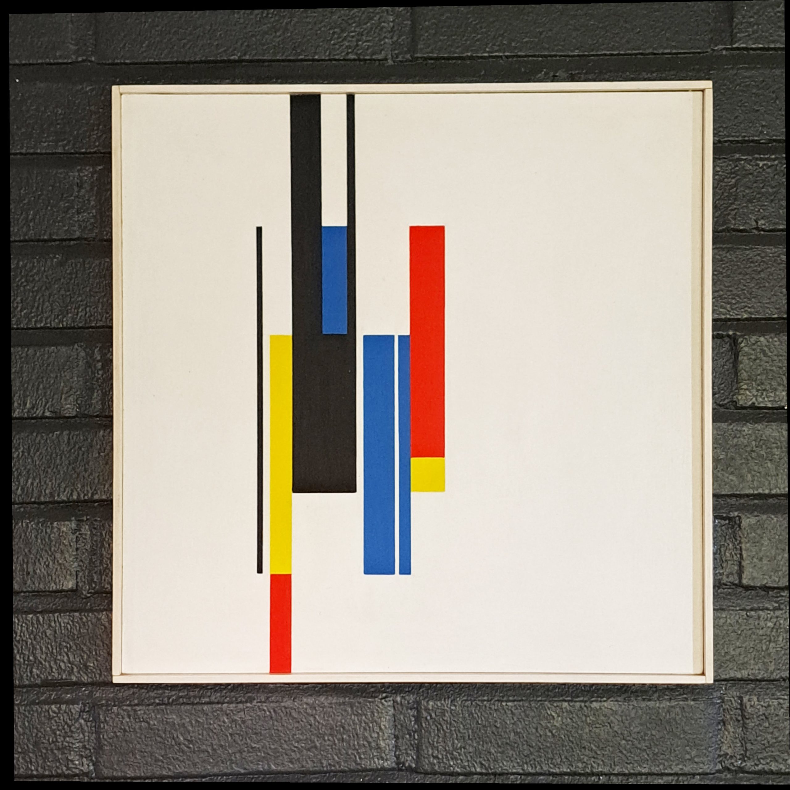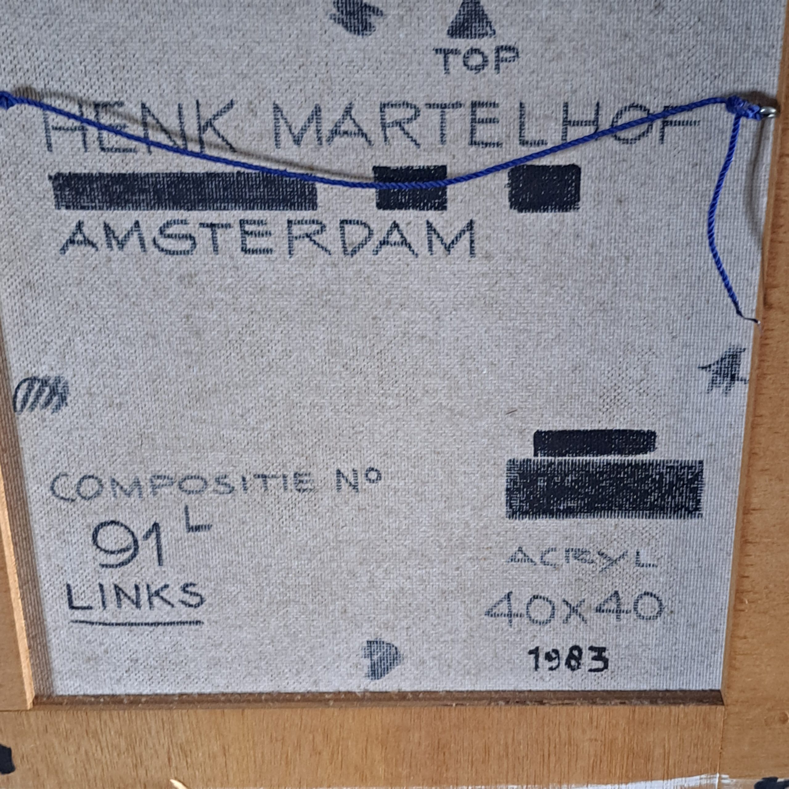 In the important Dutch tradition of constructivism, starting in the 1910s with the work of Mondriaan en Theo van Doesburg – the movement of De Stijl – the Amsterdam based painter Henk Martelhof (1917-2000) made very subtle abstract-geometric work, ‘Compositie’, like this one from 1983, acrylic on board, in very good condition, framed, 40×40.