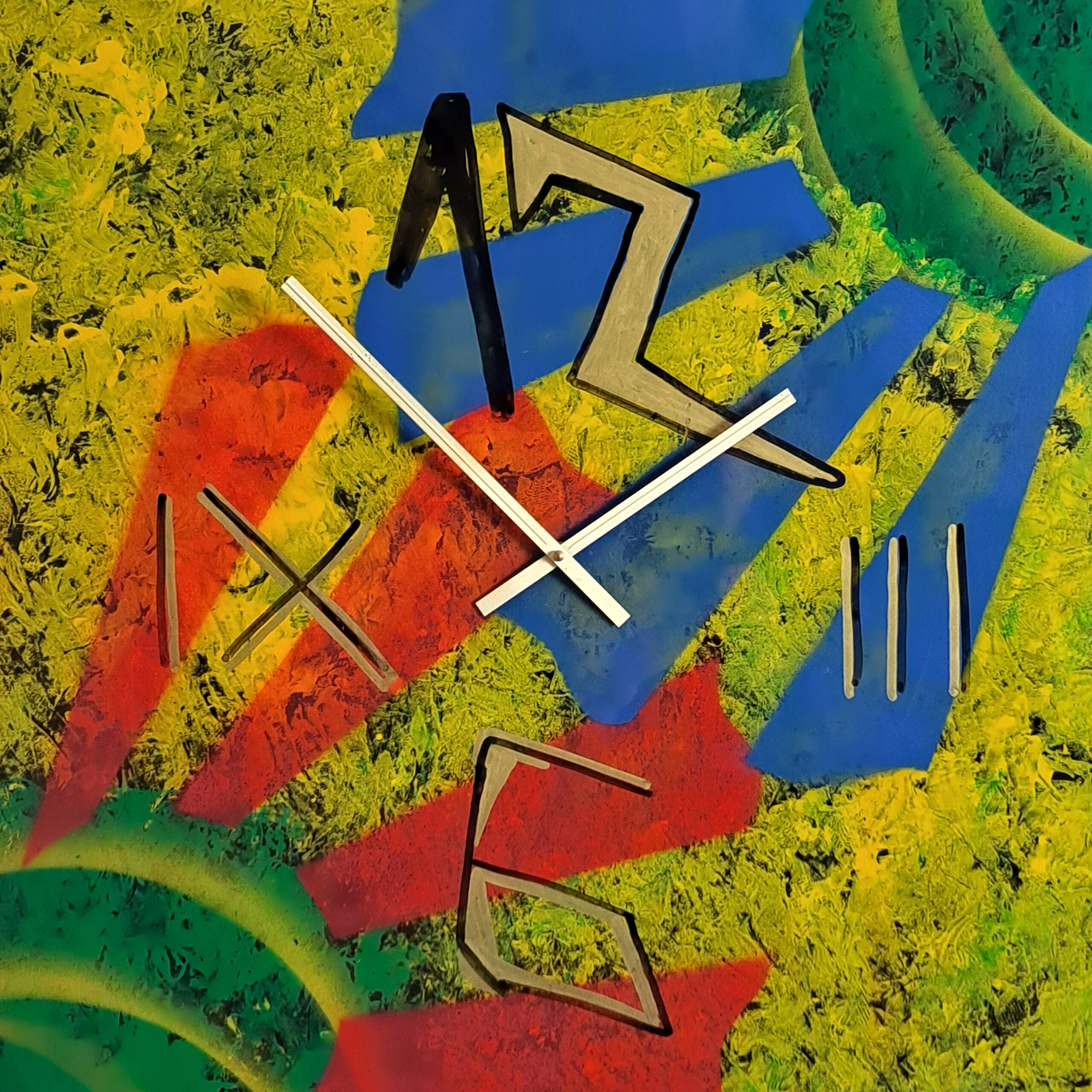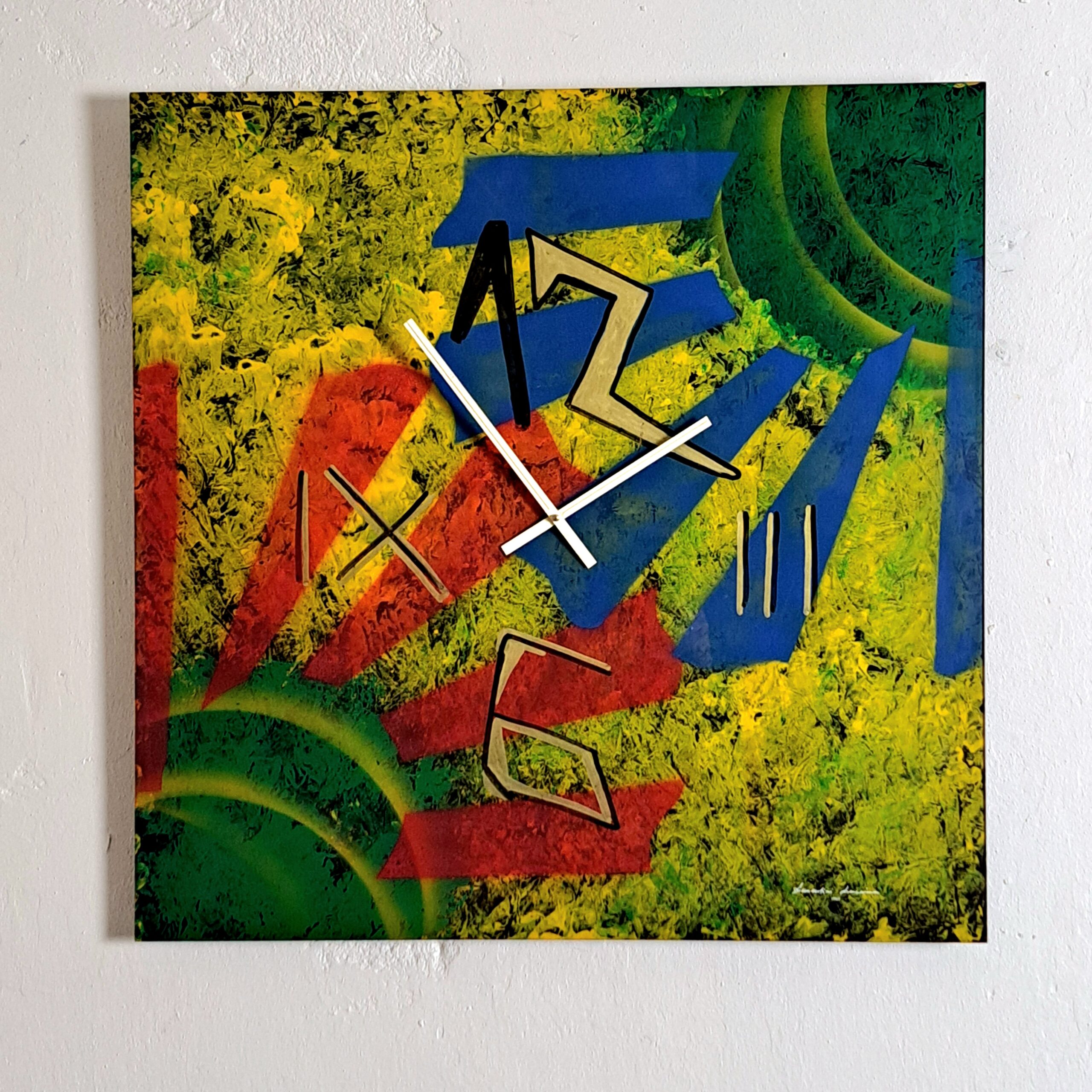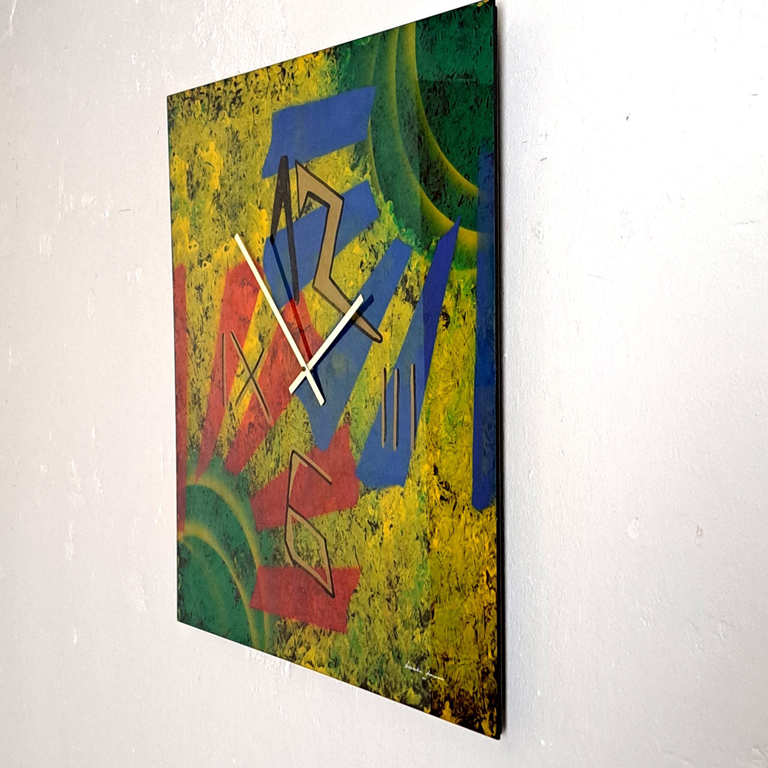 Diamantini & Domeniconi , nowadays Domeniconi, is an Italian brand committed to crafting exceptional timepieces. Over the decades, they have become synonymous with quality and elegance. Under the visionary leadership of Marco Marzini, the brand has expanded its horizons, embracing modern design trends while maintaining its Italian heritage. This fusion of past and present is evident in their celebrated products. This huge wall clock is an exemple of the D&D design, inspirated by the Memphis-design movement, and is a real piece of art. In very good condion, operates on a battery, with the mark ‘diamantini domeniconi  ITALY’, 70x70x3