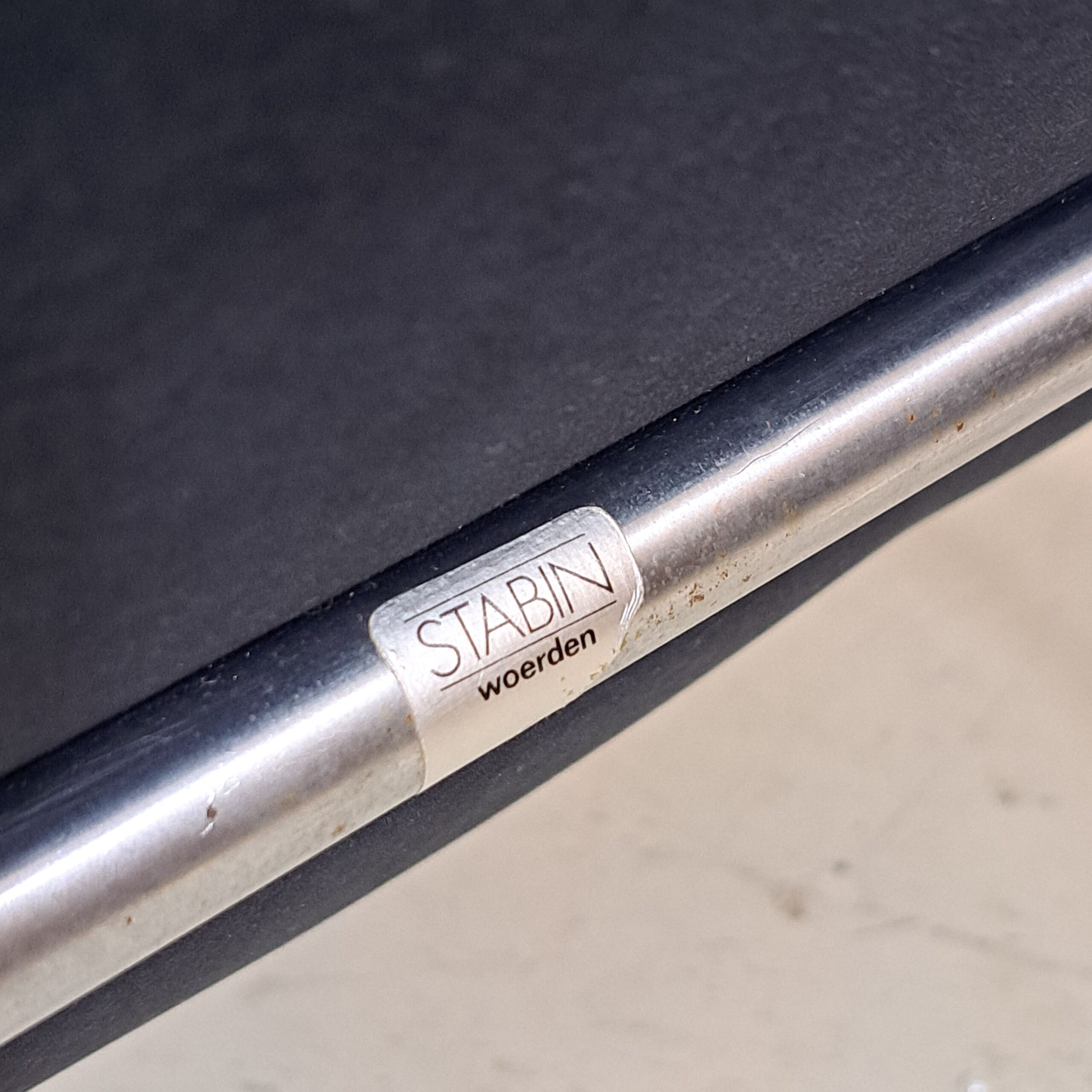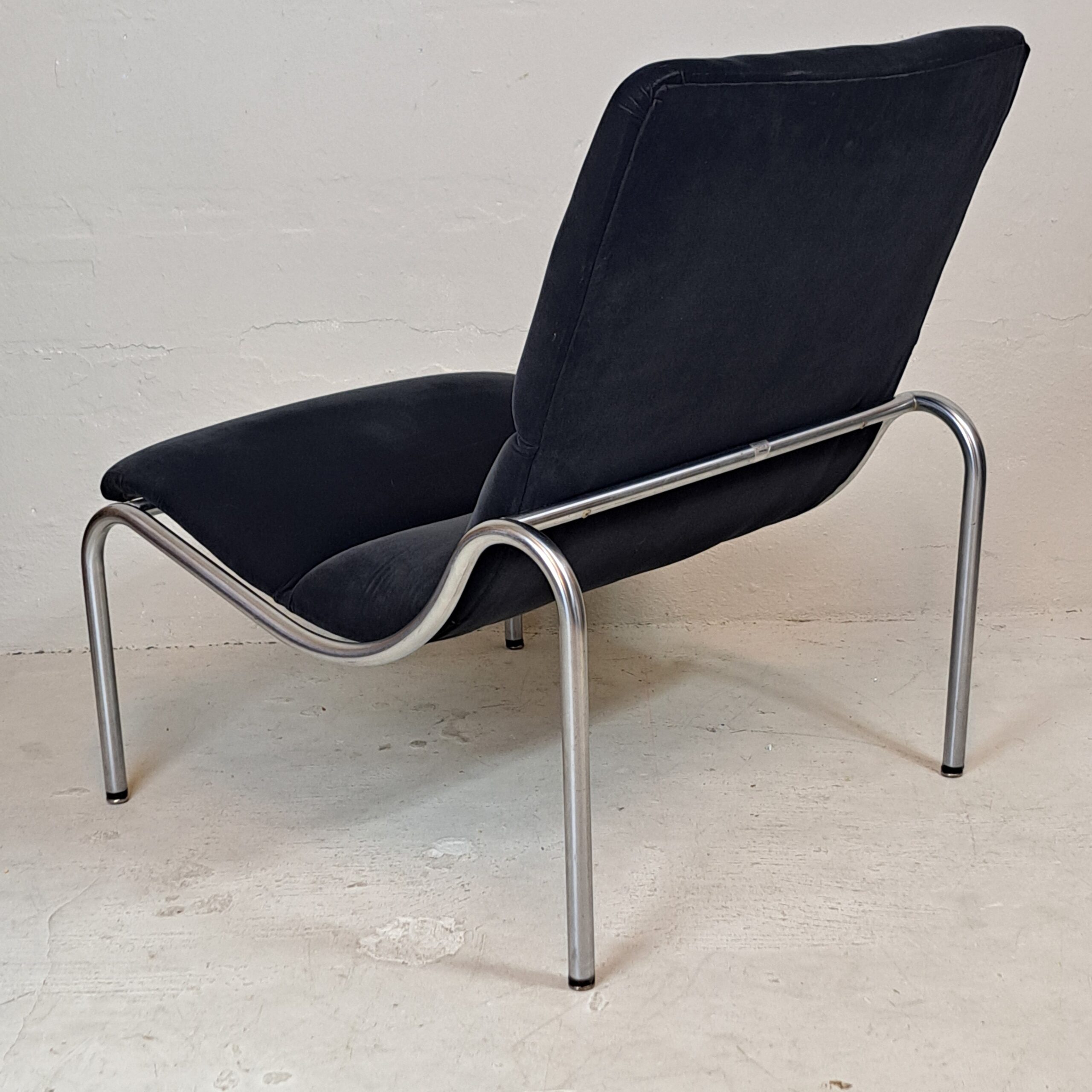 Kho Liang Ie (1927-1975) was born in Indonesia in 1927 to Chinese parents. In 1949, he went to the Netherlands to study interior design at the Rietveld Academy. In 1958, he joined the prestigious publisher Artifort as a designer and aesthetic consultant. It was he himself who suggested to Pierre Paulin and Geoffroy Harcourt – two great designers – that they join Artifort. His incredible work reflects his taste for purity and lightness. In the 1960s, the designer designed furniture for Schiphol airport, a true success story acclaimed by design enthusiasts and professionals alike. Kho Liang Ie designed some models for the Stabin factory in Woerden in the late 1960s. This model 703 dates from 1968. In very good condition, upholstered in black fabric, label Stabin Woerden, h. 76, d. 68, w. 62, seat h. 33, seat d. 46