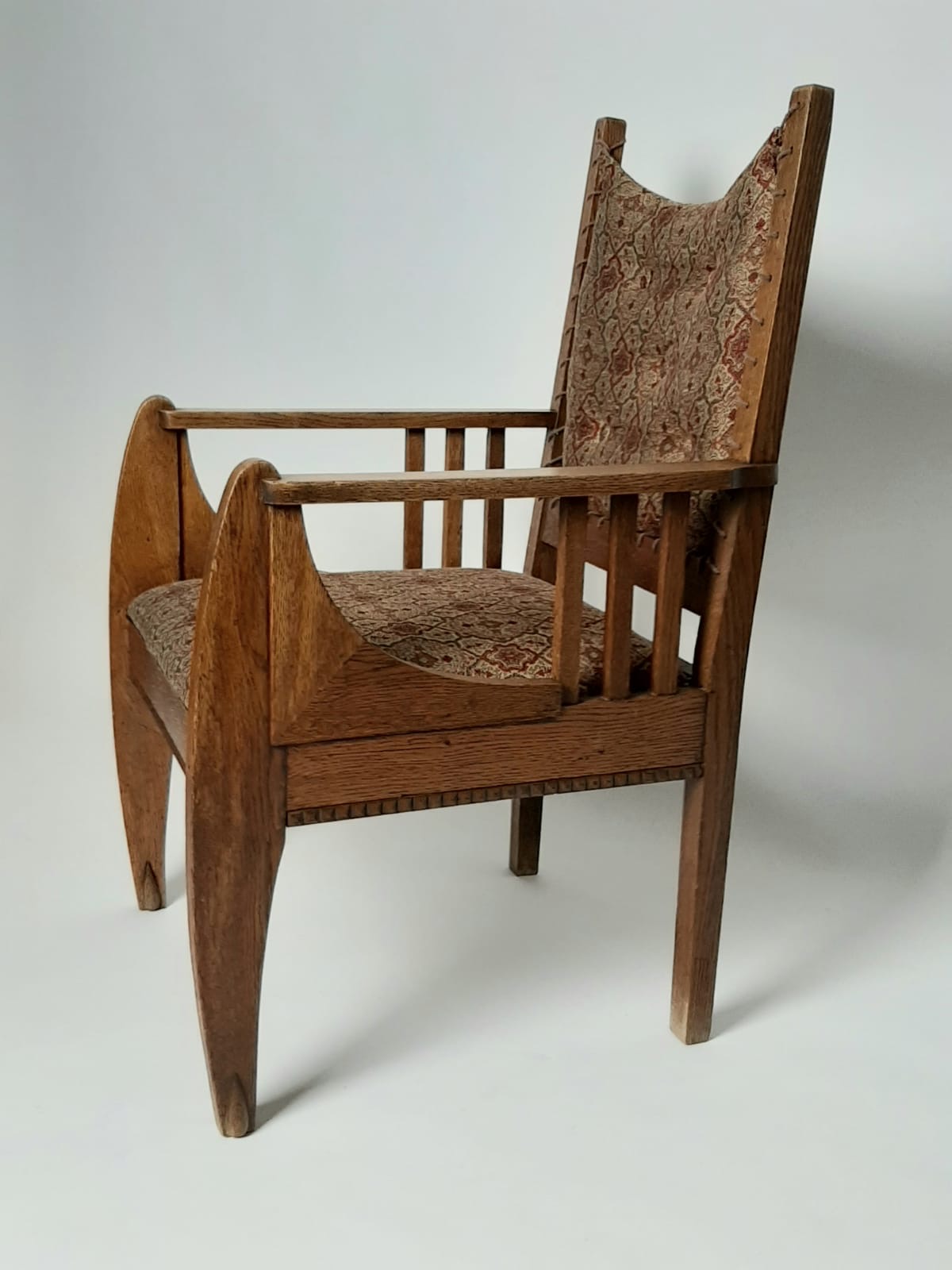 Elegante stoel, Amsterdamse School, met mooie details. De stoel is opnieuw bekleed in passende stof.