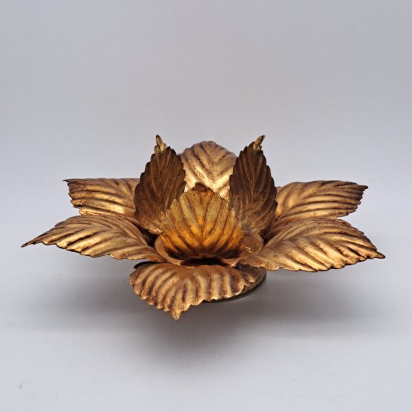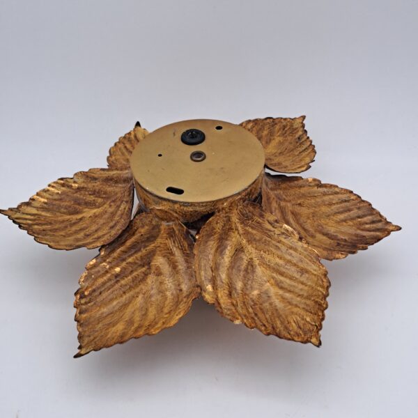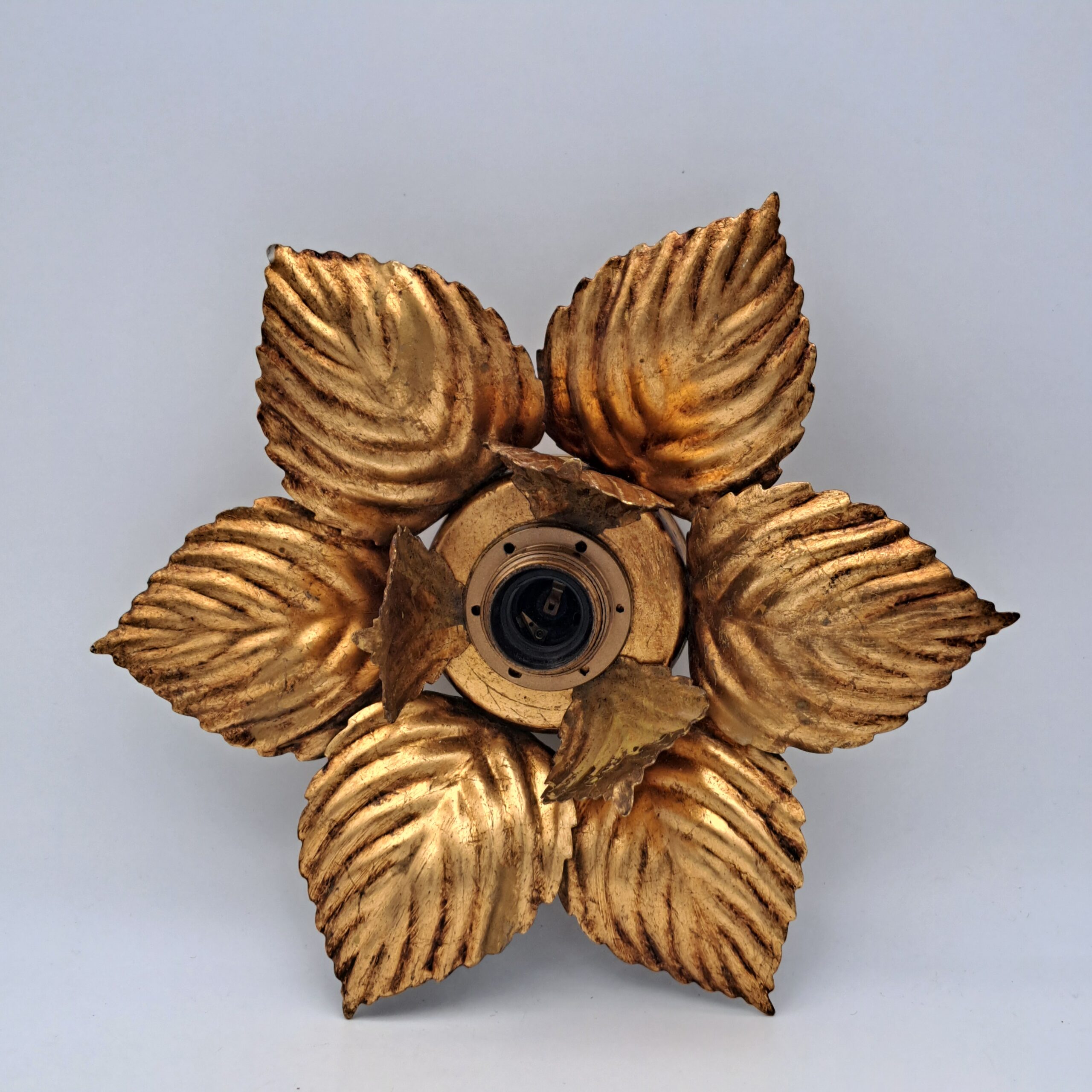 Wall or ceiling lamp in flower-form, gilded metal with a beautiful patina, 1960s-1970s, in very good condition, diam. 32, h 12