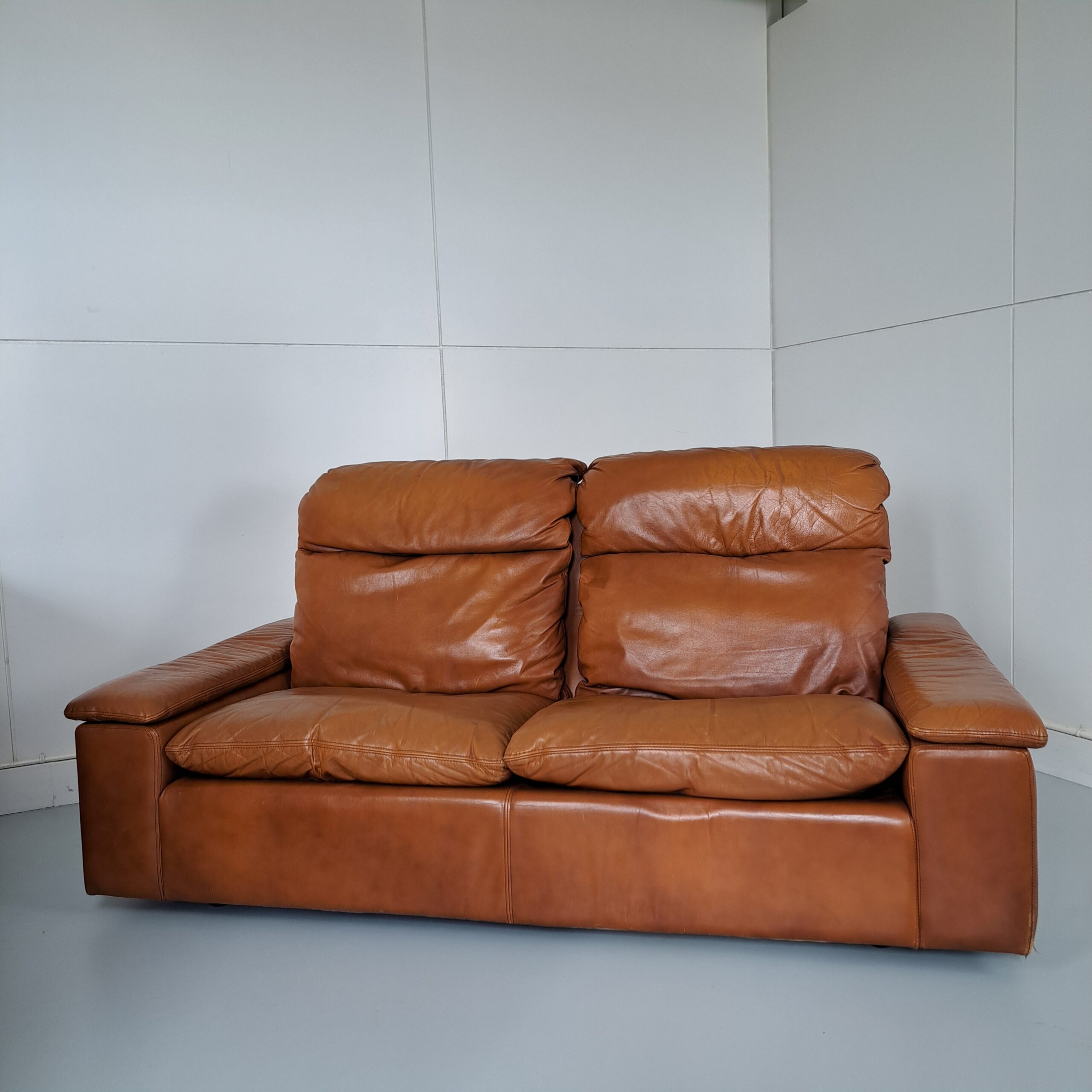 This sofa is from its first owner who bought this piece in the 1970s. Not De Sede but very much in De Sede-style and with a superior quality leather. In very good condition, w. 180, d. 95, h. 80, seat h.35, seat d. 55