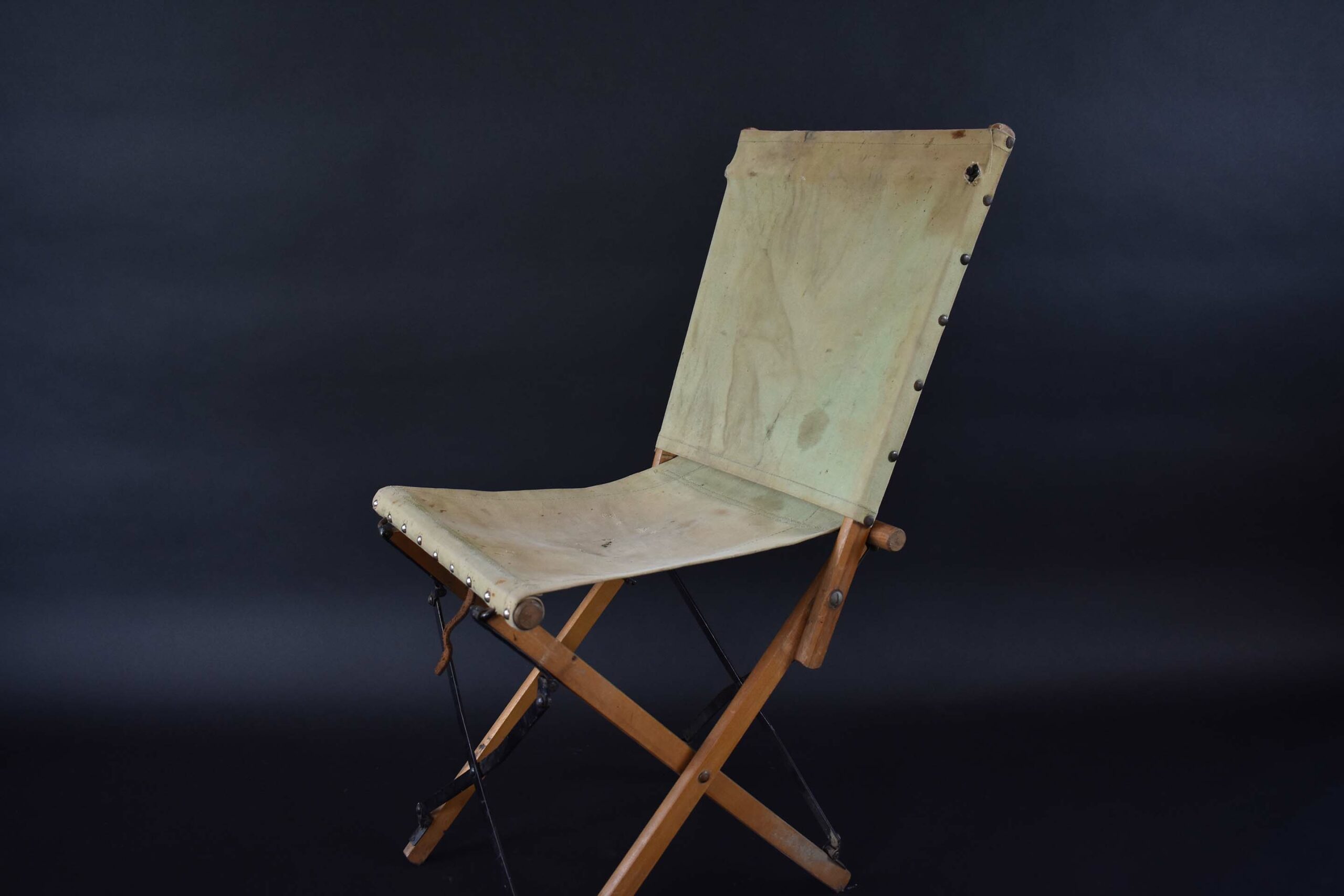 Mooie doorleefde en karaktervolle opvouwbare veldstoel van het legendarische Engelse merk Haxyes.