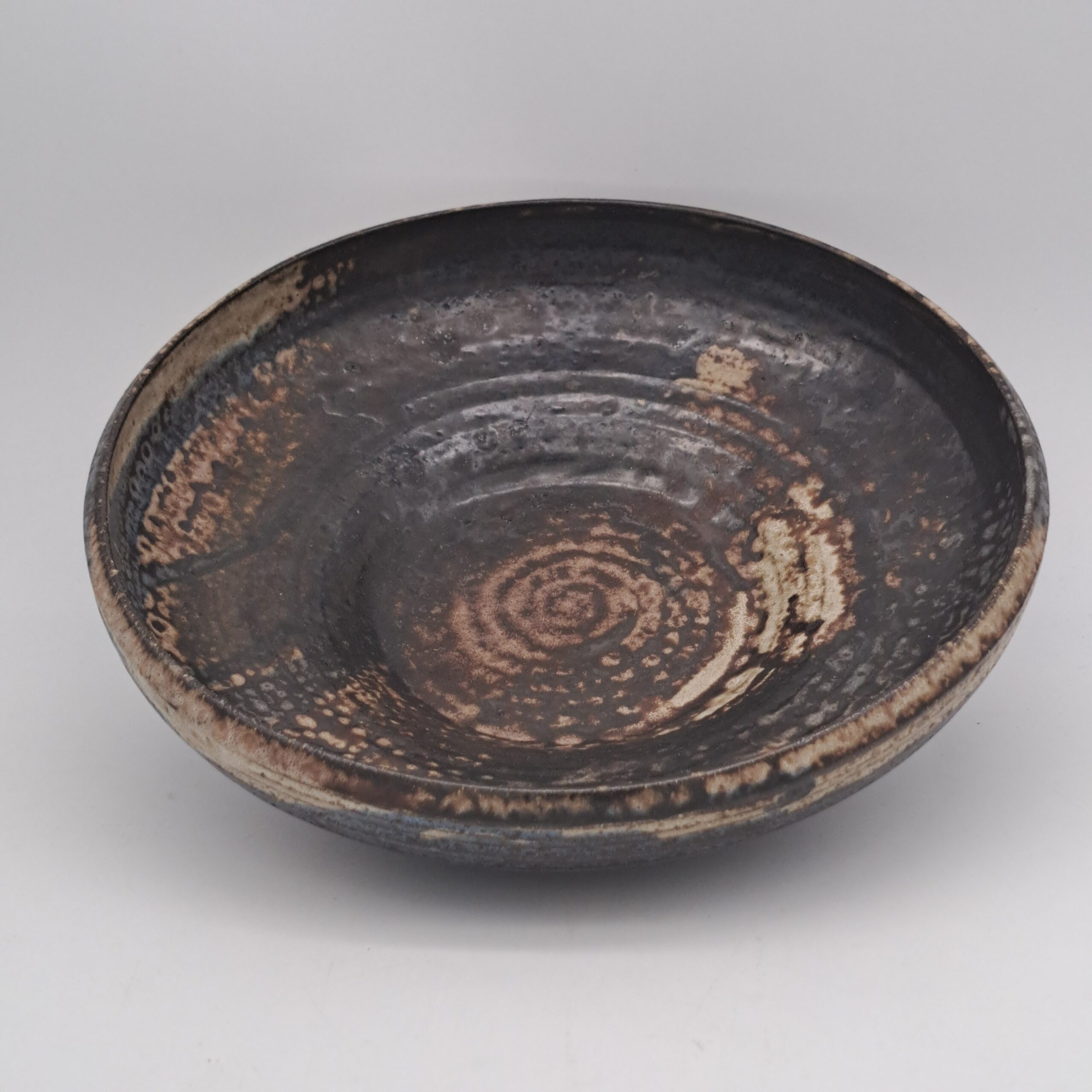 SOLDLarge bowl with beautiful glazes by the Dutch ceramist Hannie Mein (1933-2003). In very good condition, h. 8, diameter 27, signed Hannie Mein U (unica), 1980s