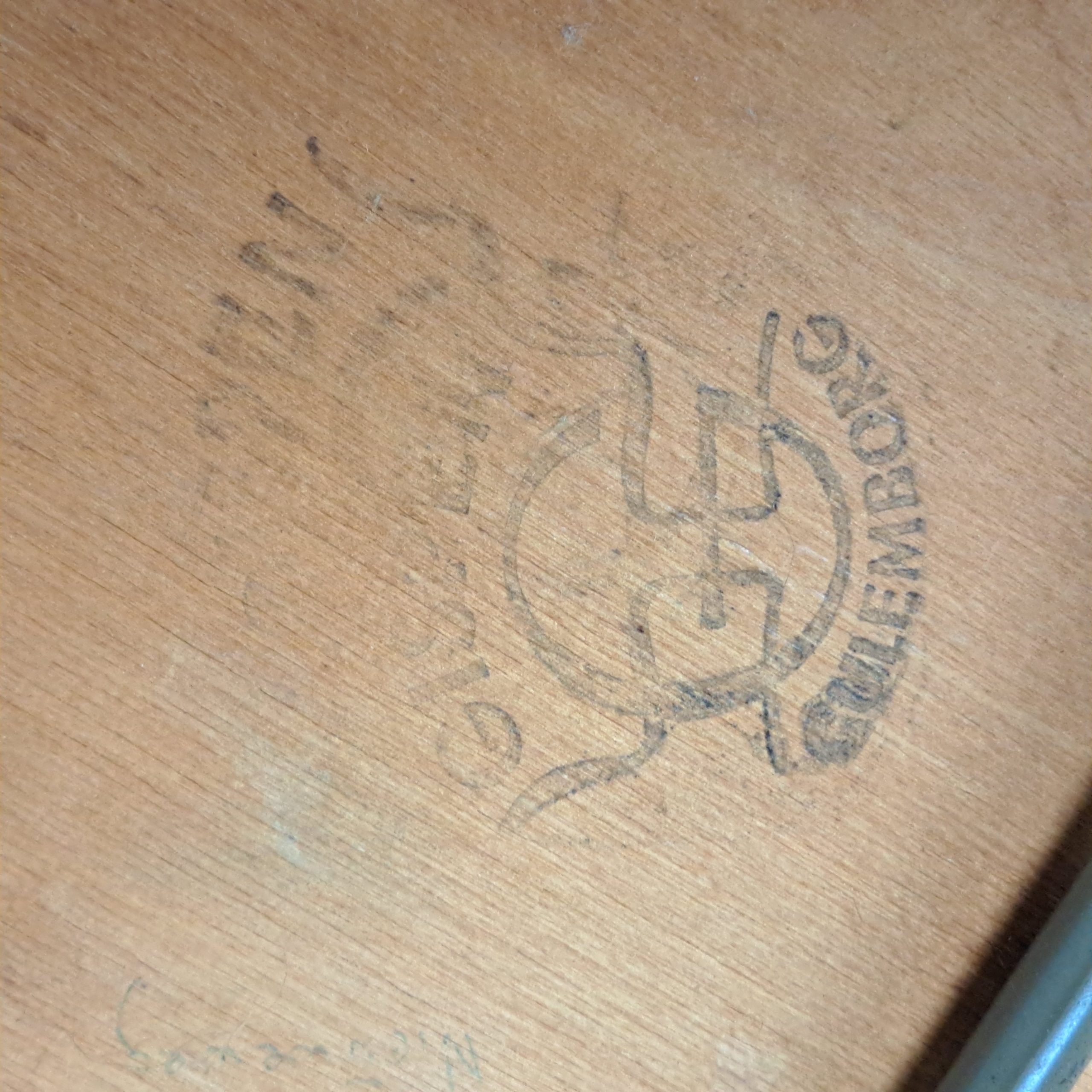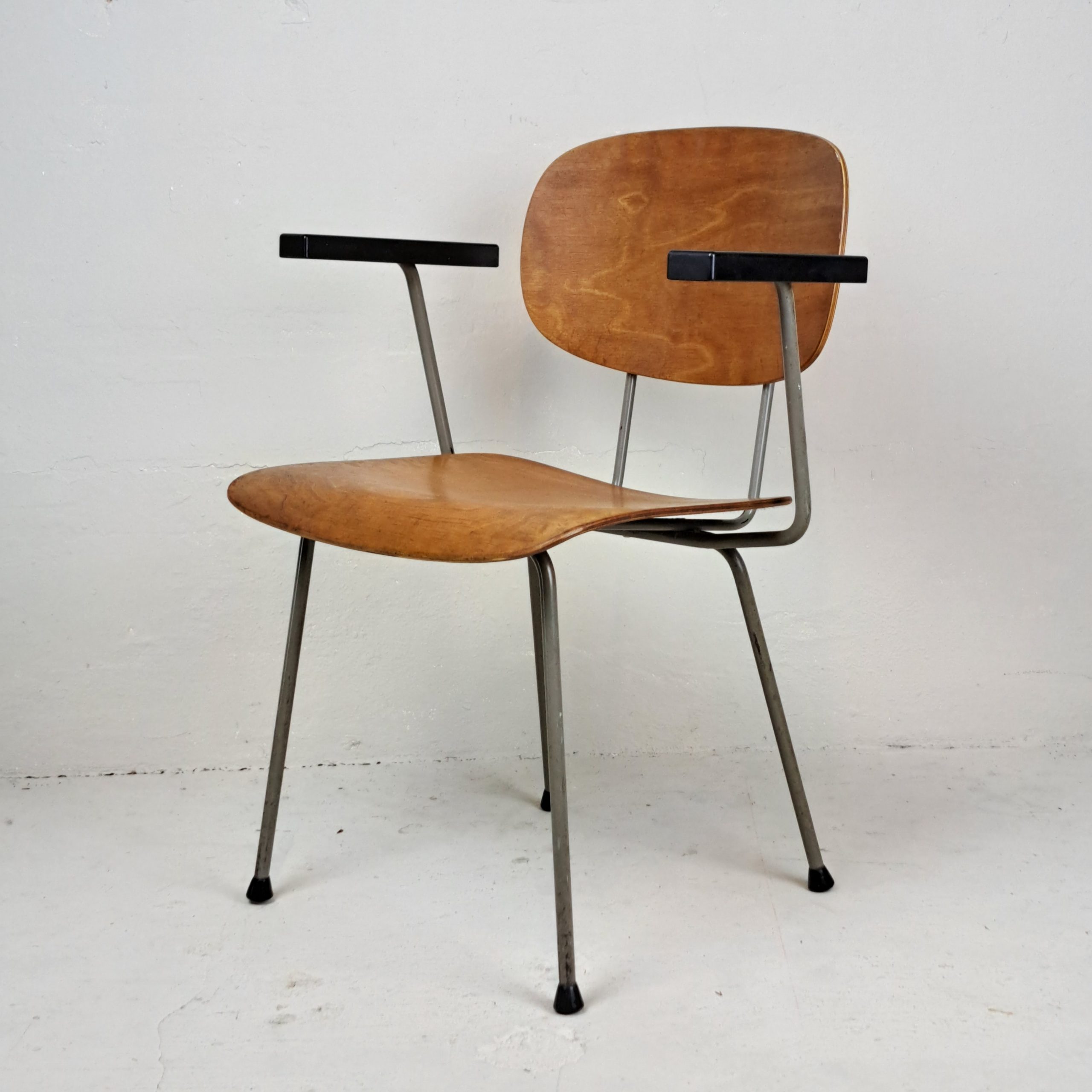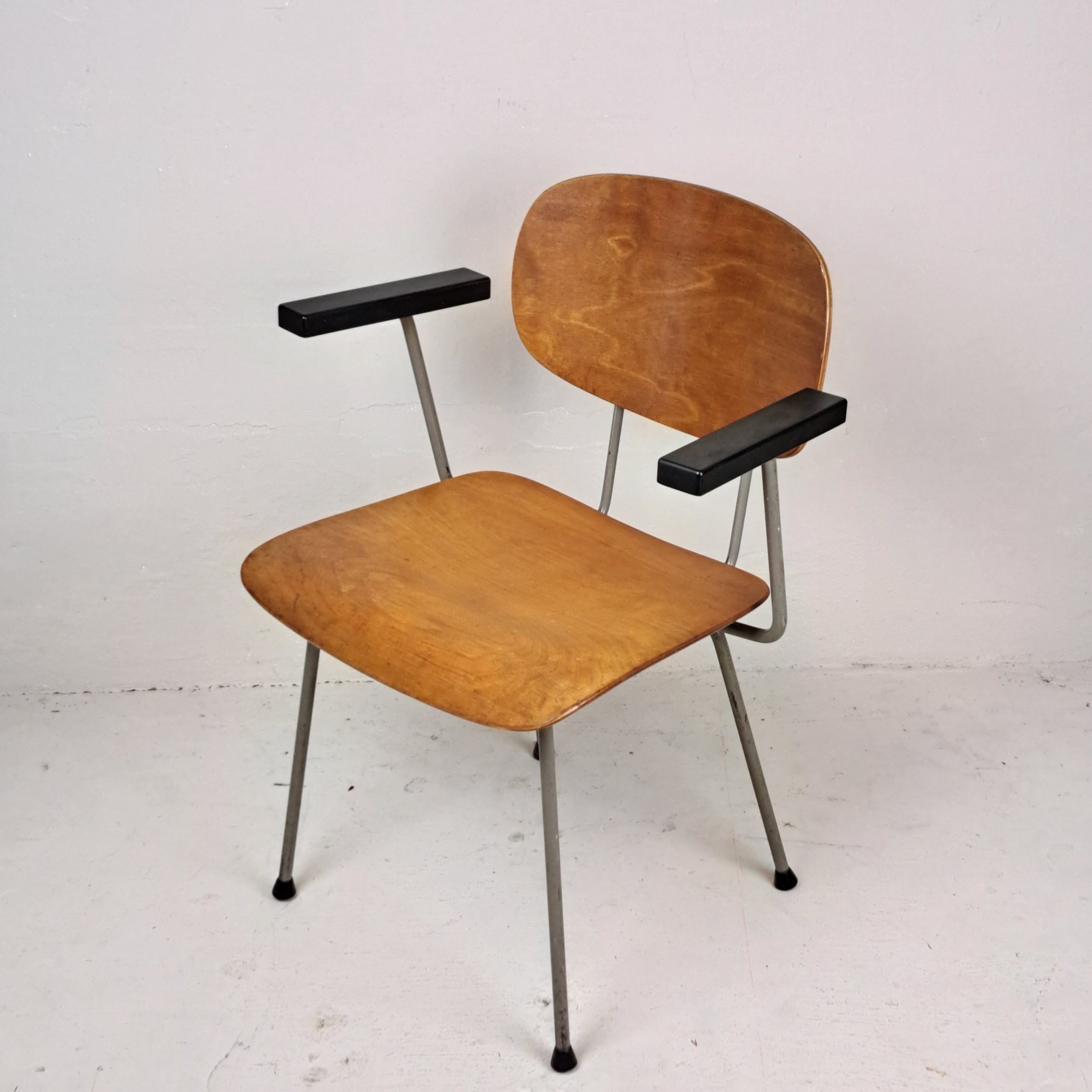 Chair 216 by Wim Rietveld for the famous Dutch furniture maker Gispen Culemborg, 1953. In very good condition with only minor signs of use, plywood, steel, bakelite armrests, with factory stamp, h. 77, w. 59, seating h. 44, w. 40.