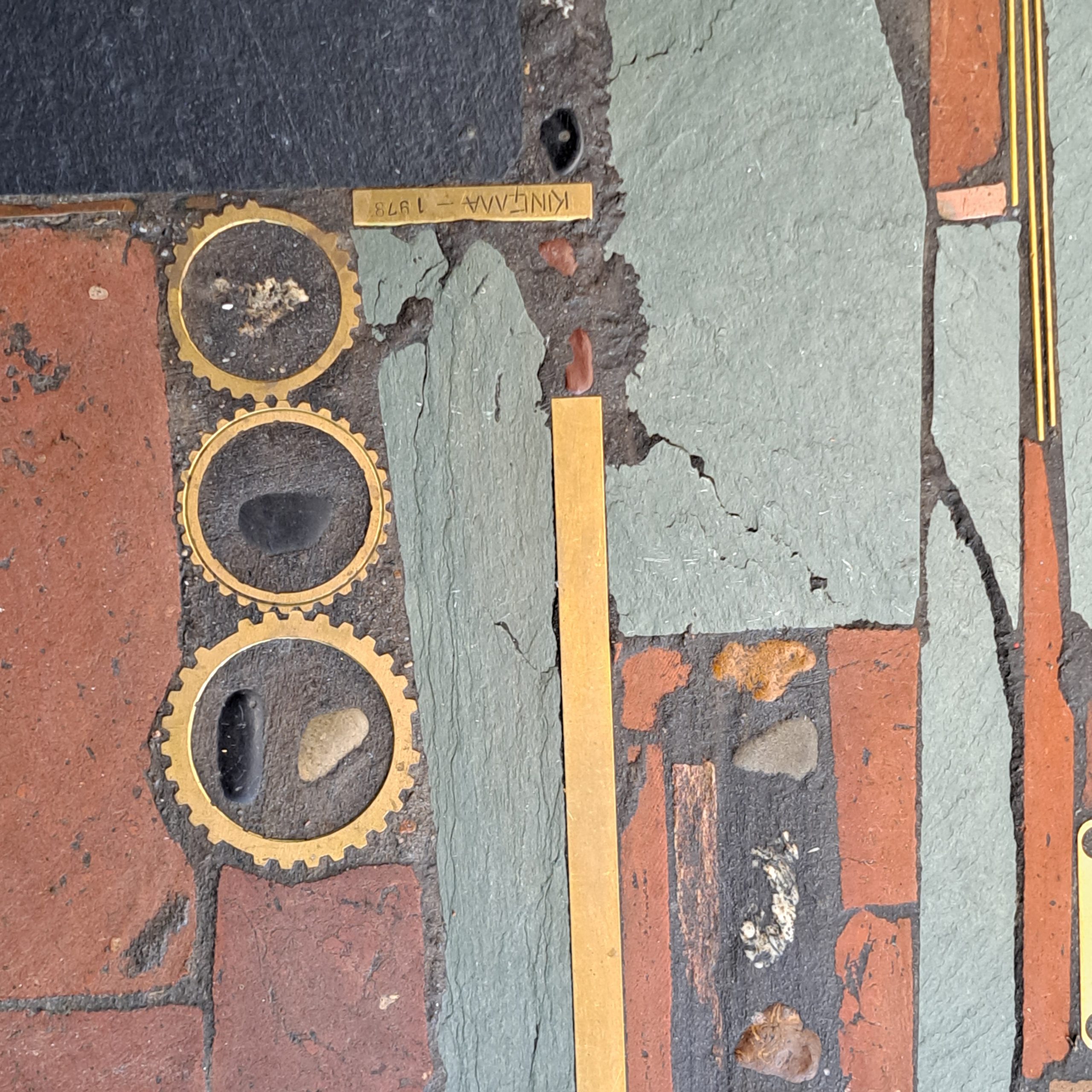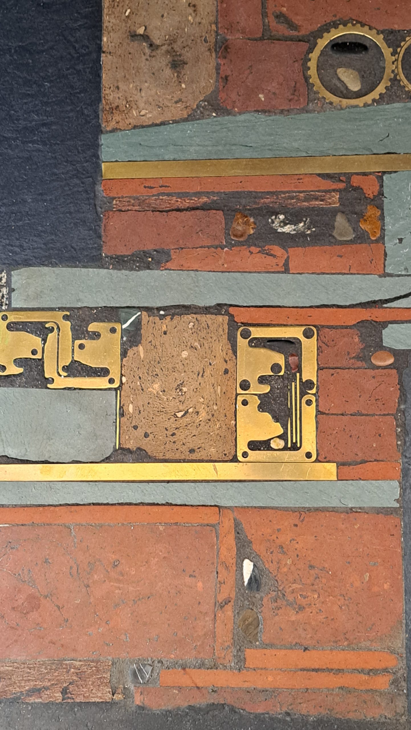 stones and brass, placed on a black metal frame, with some minor marks of use, 120x76x33.