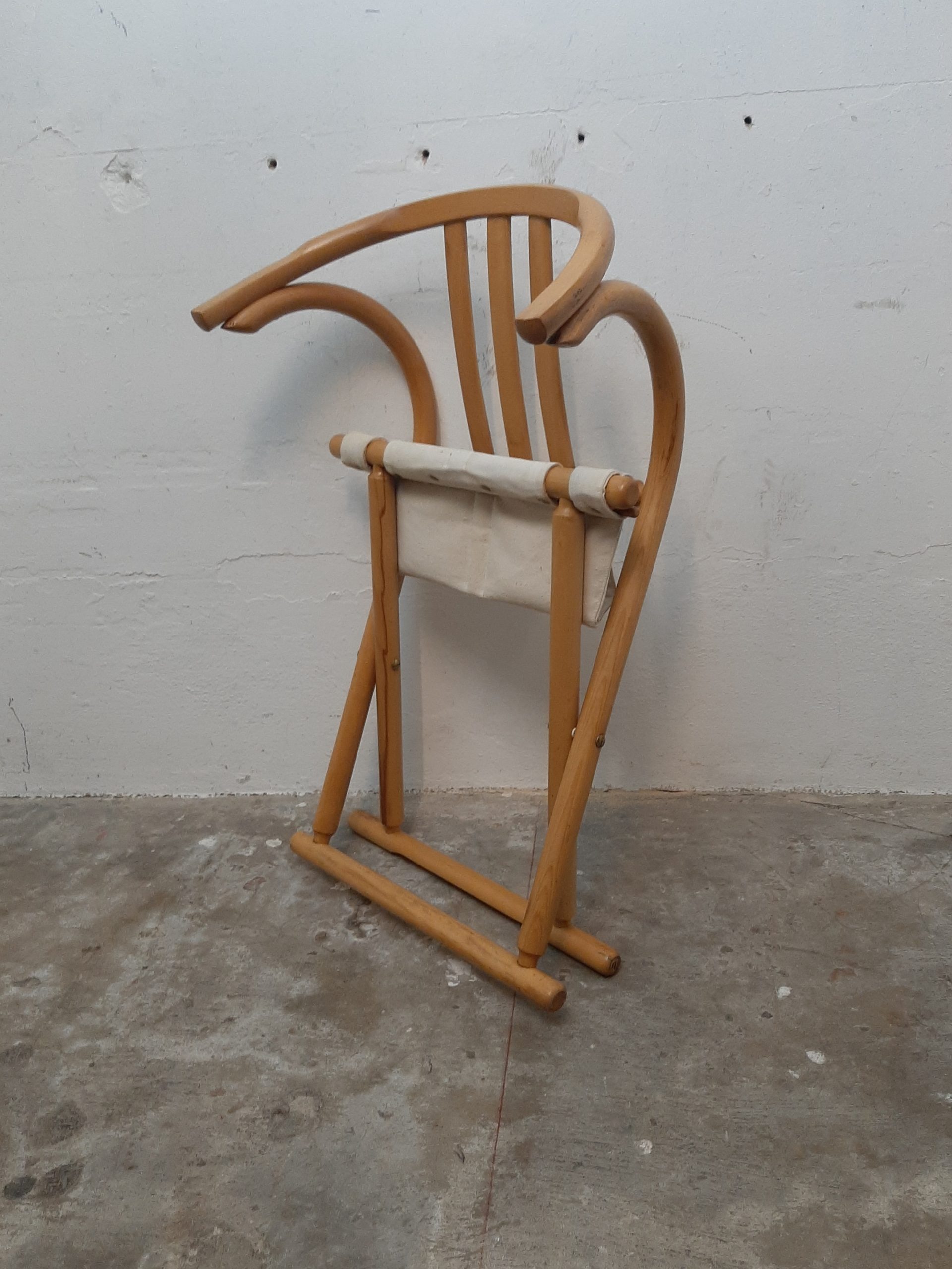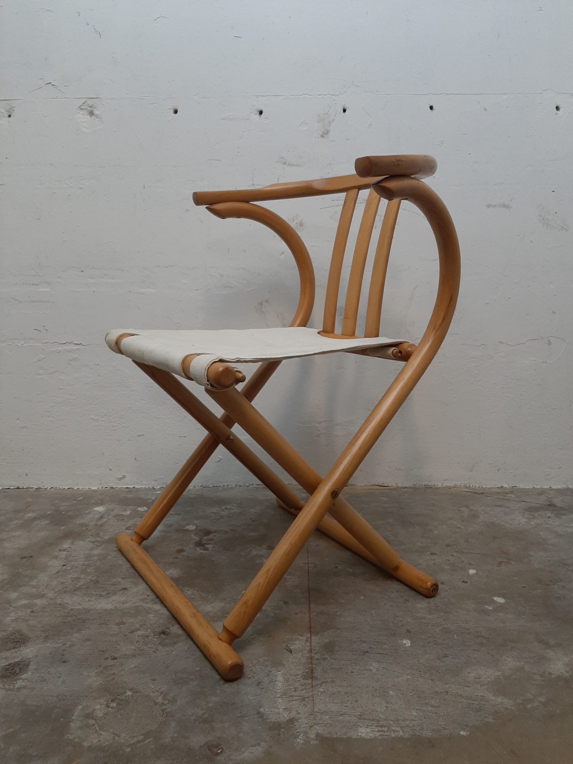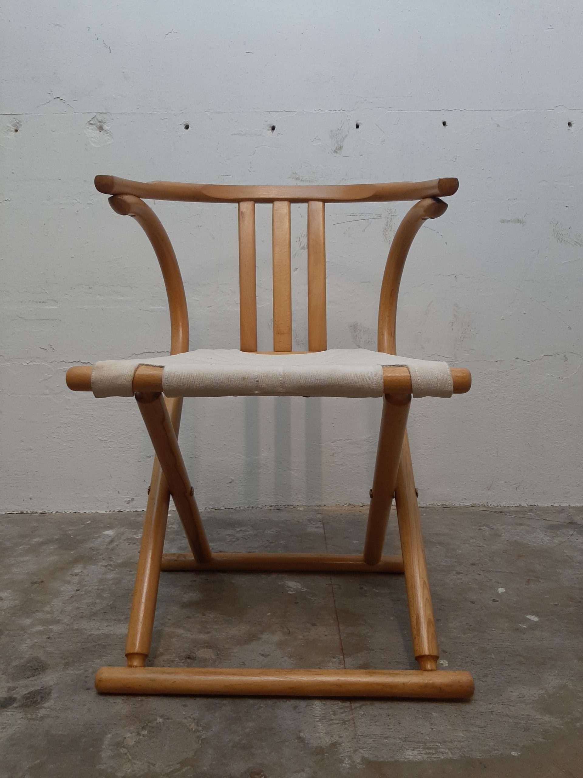 This very elegant folding chair is widely attributed to Thonet or is called ‘Thonet-style’. The chair is made of bend beech with canvas and in a very good condition, h 76, w55, s 42×42