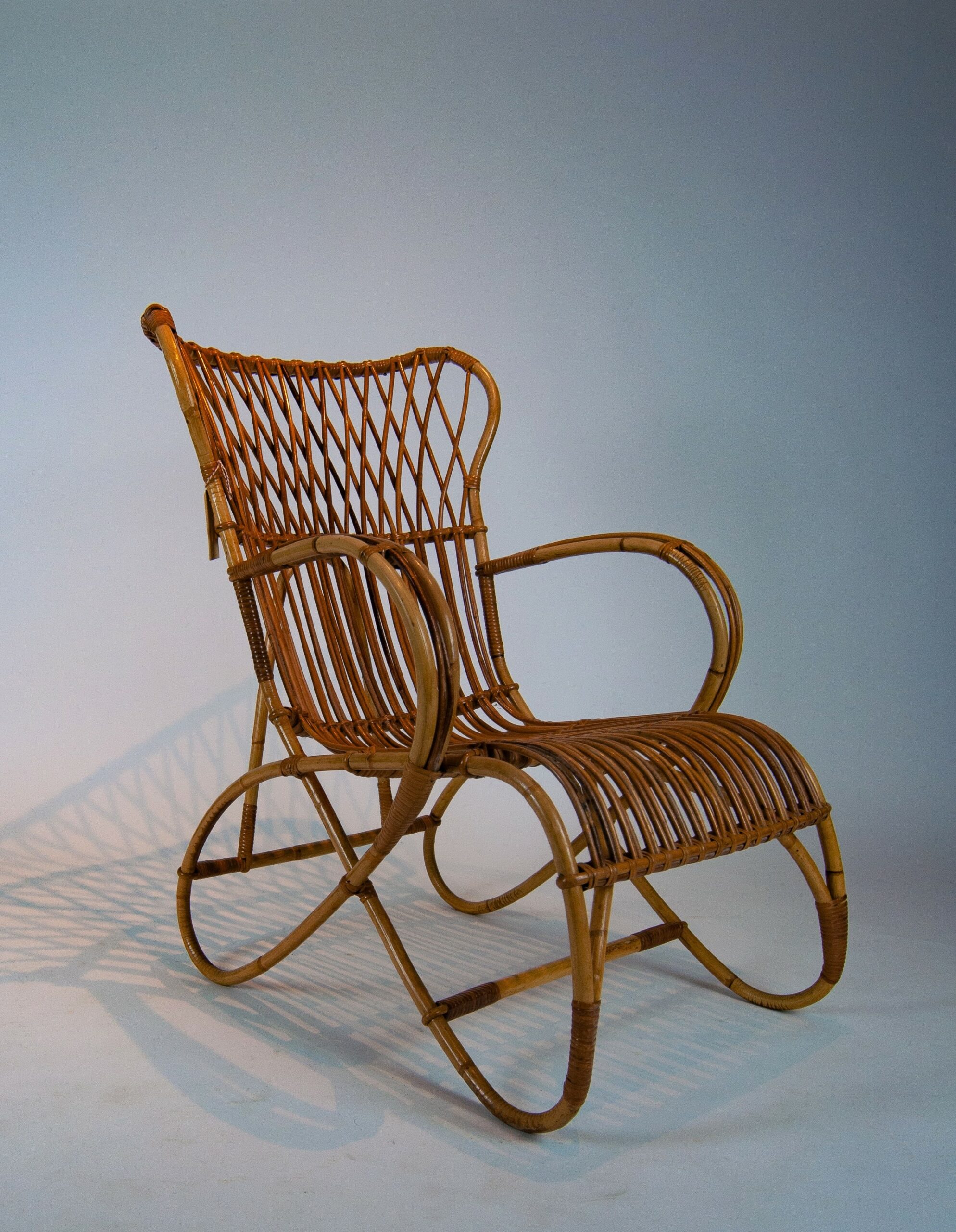 Mooie fauteuil van de Friese rotanfabriek Rohé, circa 1960.