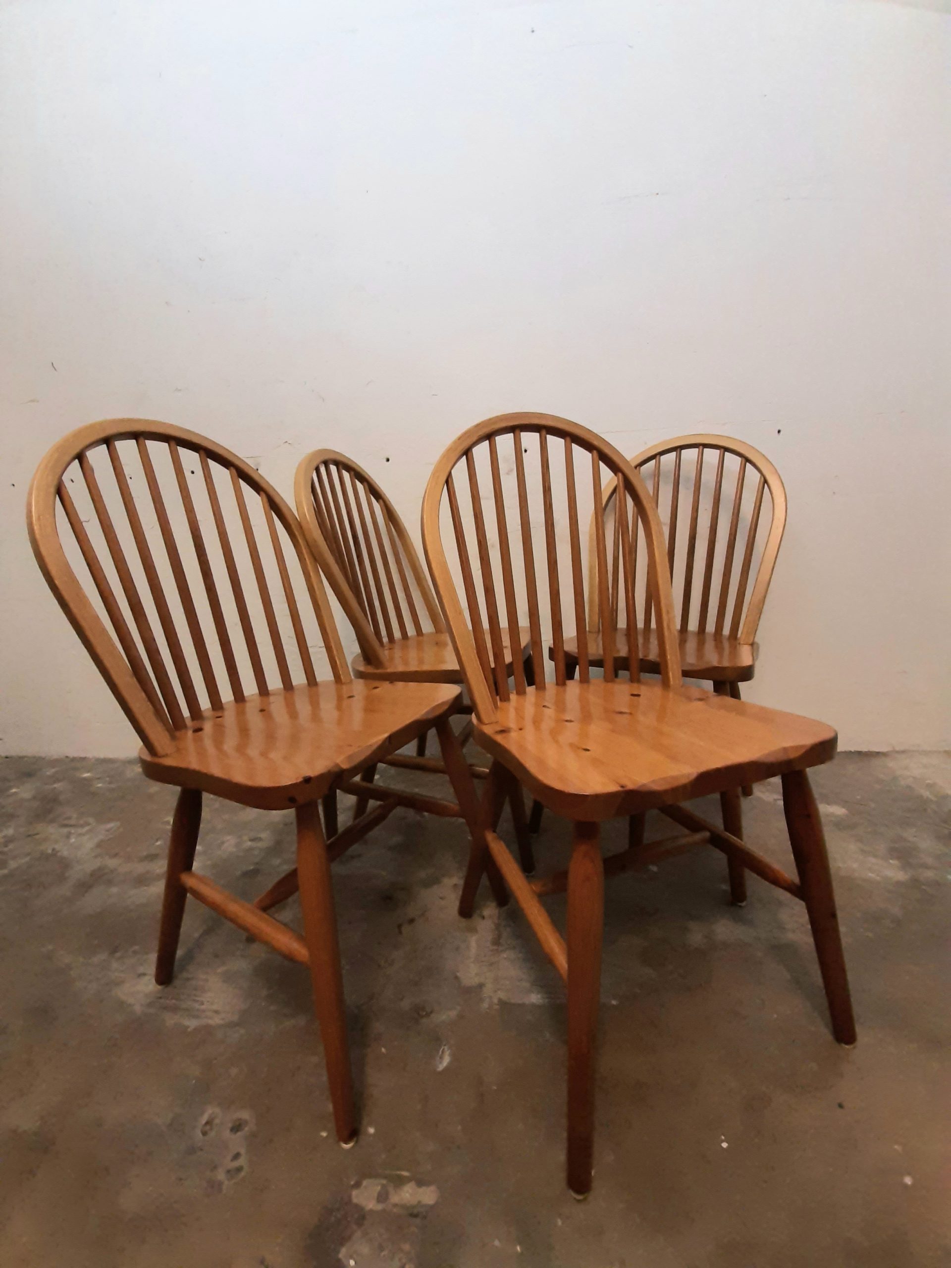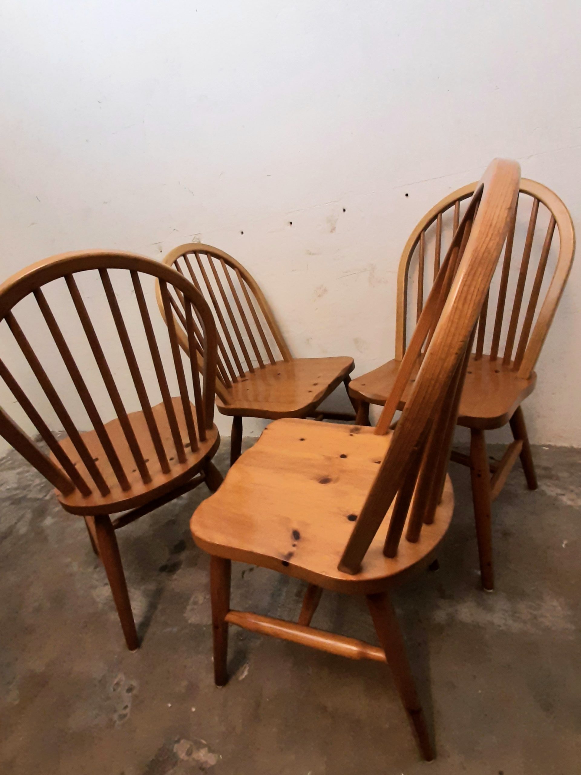 Very useful set of 4 dining chairs in very good condition 1970’s, h 92, w46, seating height 45