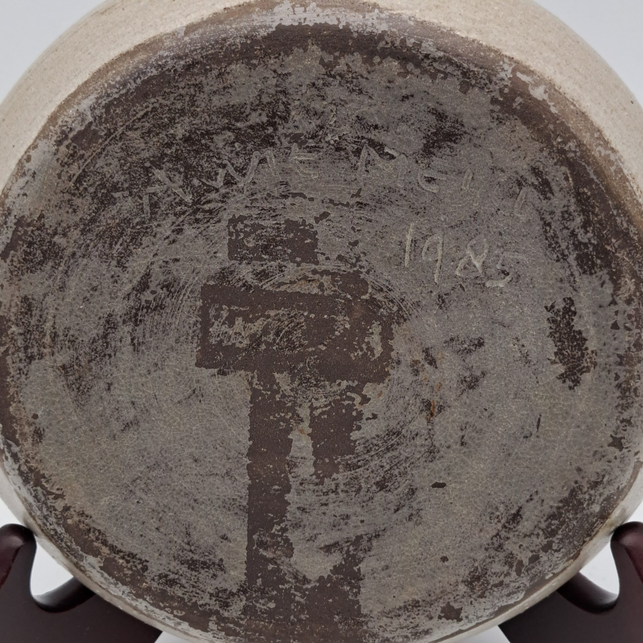 Bowl in delicate colours by the Frisian ceramist Hannie Mein (1933-2003), unica in very good condition, signed and dated ‘Hannie Mein 1985’, diam. 18, h. 4.