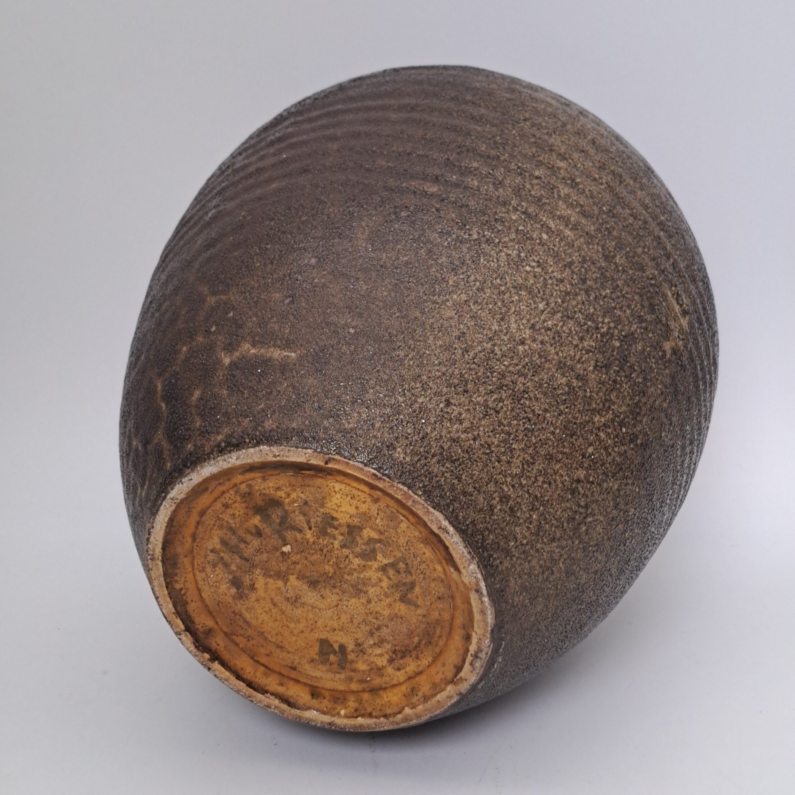 Impressive vase, beautifully glazed, by the well-known Dutch ceramist Henk van Riessen (1946-2018). Worked mainly in the village of Vledderveen. In very good condition, h. 28, diameter 24, signed Hvan Riessen.